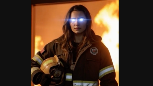 A second post that day features an AI-generated video of French as a fireman with laser eyes. “At ManyVids, we believe in a Human-Centered Economy (HCE) — where merit and meaning are preserved because they matter,” the post says. “The job-creation network of the future, for humans who want to monetize their passions.” It goes on to mention, but not explain, a fictional concept called “Universal Bonus Intelligence.”