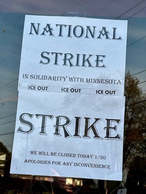 There were also more than 300 coordinated economic actions to shut down businesses as part of the first significant general strike of Trump’s second term. See the chart below from National Shutdown showing the geographic reach of the coordinated action: