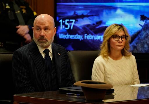 Former judge Leslie Ann Celebrezze, right, with her attorney Ian Friedman, waits in court before entering a plea of guilty for records tampering in Cuyahoga County Common Pleas Court.