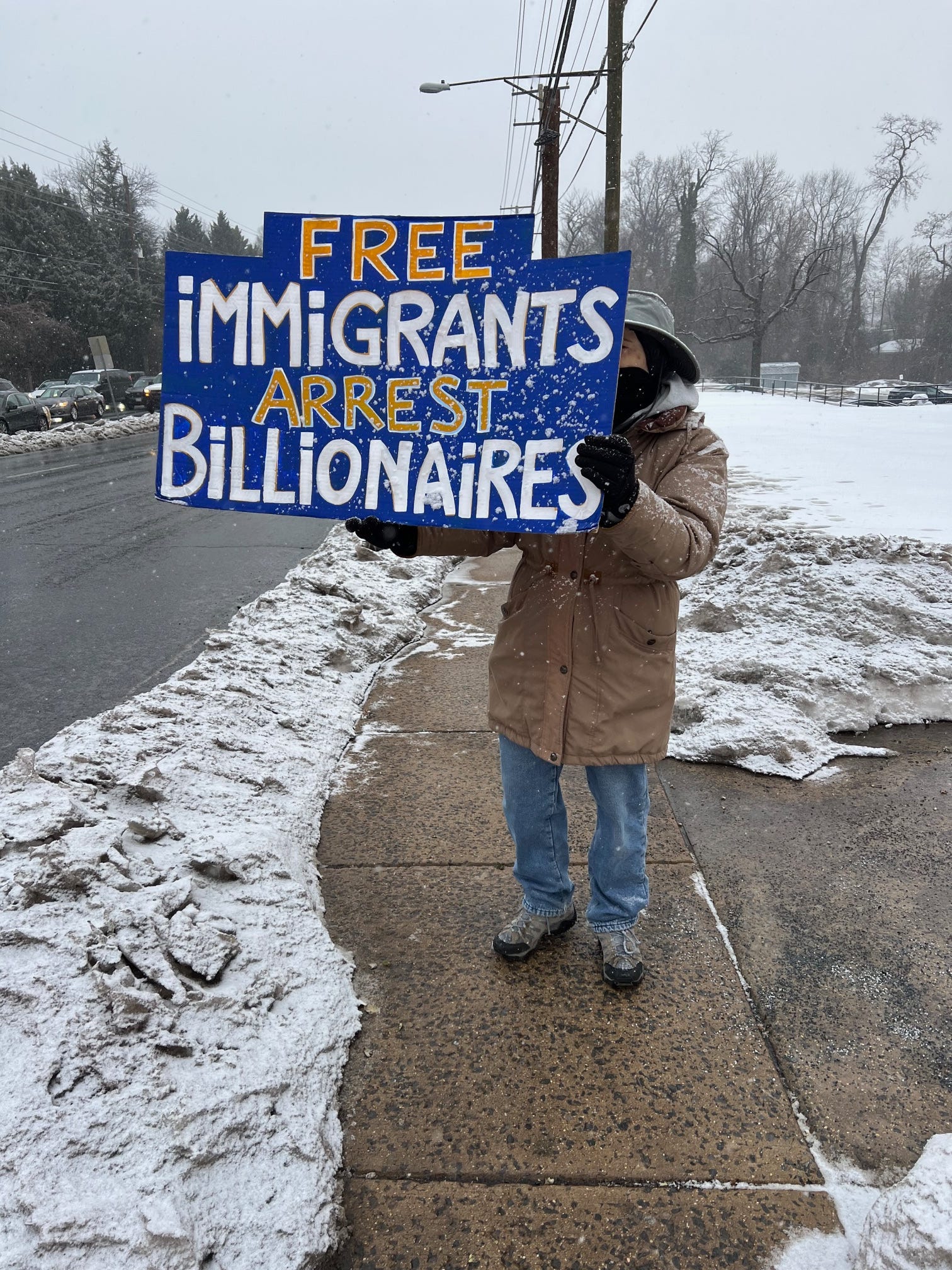 Georgia Ave and Forest Glen Silver Spring Md 27 degrees and snowing about 15 of us