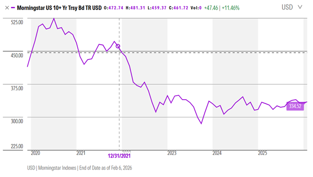 An investor of 10-year Treasury bonds has seen a drop of 19% in the market value of his bonds over the past four years. That investor has a problem then—if he sells those Treasury bonds, he realizes a loss of nearly 20%. If he holds the bonds to maturity, he will be repaid the principal with inflated dollars that are worth much less than the dollars he used to buy the bonds.