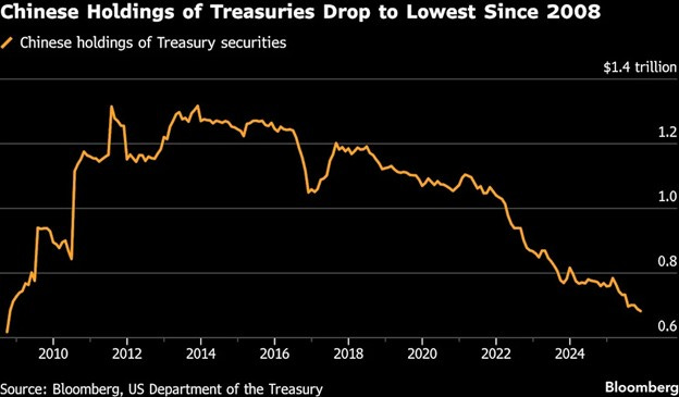Bond yields in the United States have risen sharply since just five years ago. Lenders and bond investors have paper losses of nearly 20% on its US Treasury portfolios since that time.This poses serious challenges for banks, with large US Treasury holdings. They need their reserves to hold value over time, to capitalize the institution, and to collateralize new loans.China’s banking regulators have instructed their largest banks to cease new purchases of US government debt, and to strongly consider selling existing holdings.The Chinese government itself has slashed its holdings of US Treasury bonds, which are at the lowest level in eighteen years.
