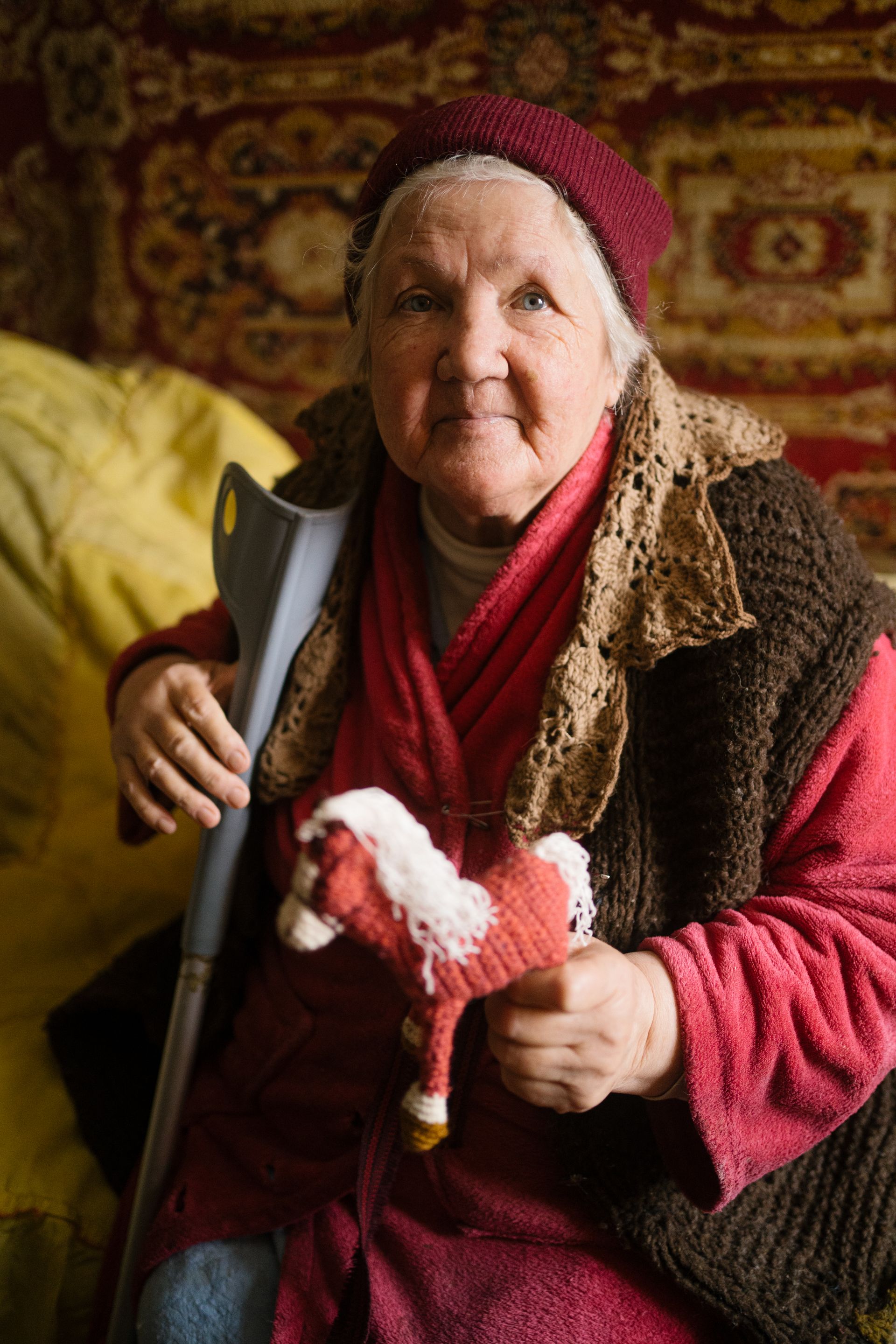 It was 14 degrees Celsius (57 degrees Fahrenheit) inside Popova’s apartment that day, up from 11 degrees Celsius (52 degrees Fahrenheit) earlier in the week. *“*For the last four days there was no heating at all,” Popova says as she greets the group of volunteers, immediately holding out her hand-crocheted pink horse as a welcoming gift.