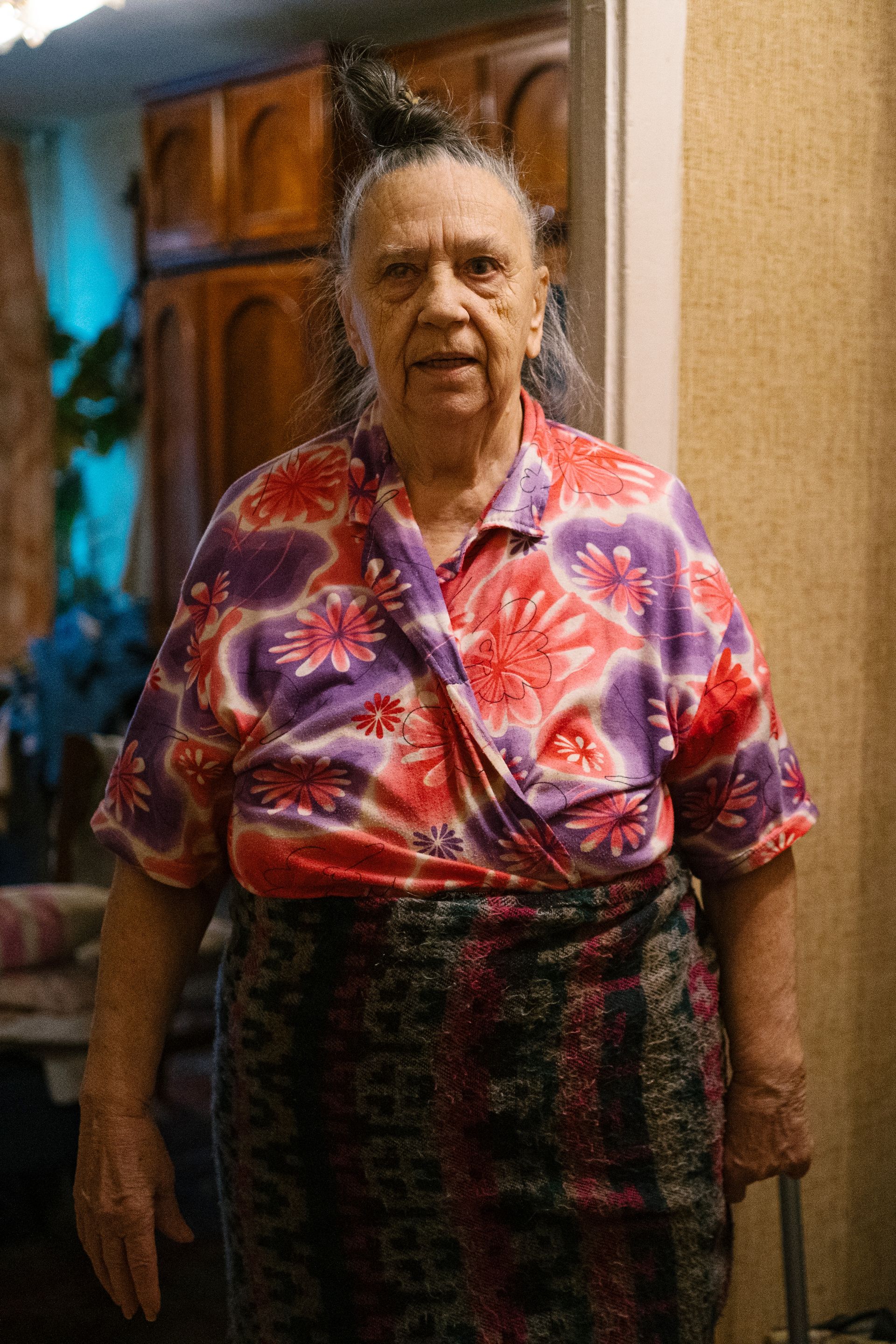 Tamara Babkova is 87, and lives on the 10th floor. She never had kids and in her youth, she worked as a chef.