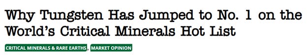 This problem is here to stay, in other words, and this feature from the Critical Minerals Institute is terrific. Two tungsten industry insiders explain how deep these problems go, and why.