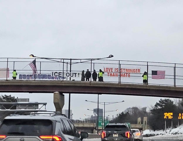 Second, a reader who is a regular participant in “bridge brigade” protests sent an article about a victory by protesters against efforts by Connecticut state police to shut down protests along the highway or on overpasses. See Connecticut Public Radio, Connecticut State Police agree to allow highway overpass demonstrations.