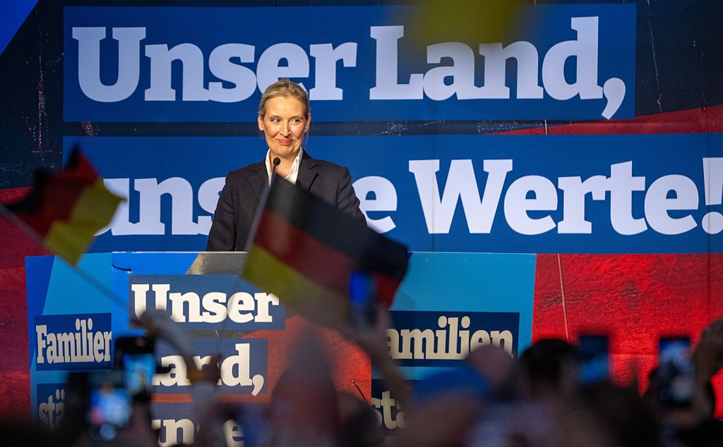 The federal chairman of the Alternative for Germany (AfD), Alice Weidel, speaks at the election campaign kick-off event of the AfD Rhineland-Palatinate on Jan. 16, 2025. (Harald Tittel/picture alliance via Getty Images)