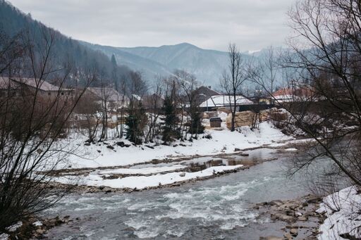 A view of the mountain village of Ust-Chorna in Zakarpattia Oblast, Ukraine, on Feb. 10, 2026. Pt.1. (Alona Malashyna / The Kyiv Independent)
