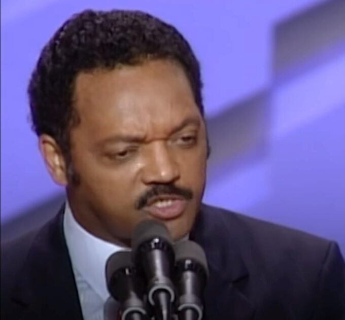 Jesse Jackson giving the keynote speech at the 1984 Democratic Convention. (Screenshot from NBC broadcast.)