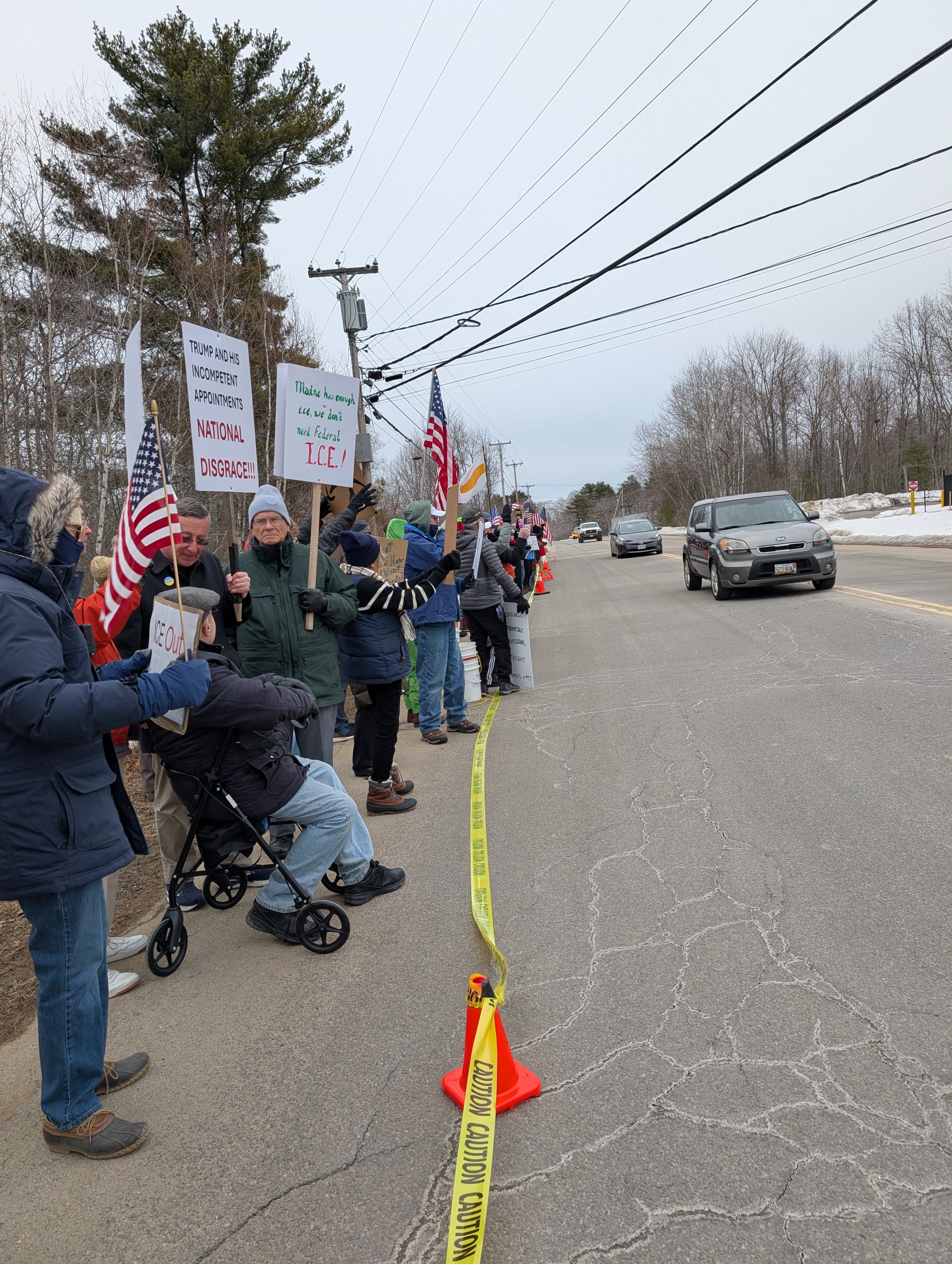 At one of ICE facilities protest in Scarborough, Maine