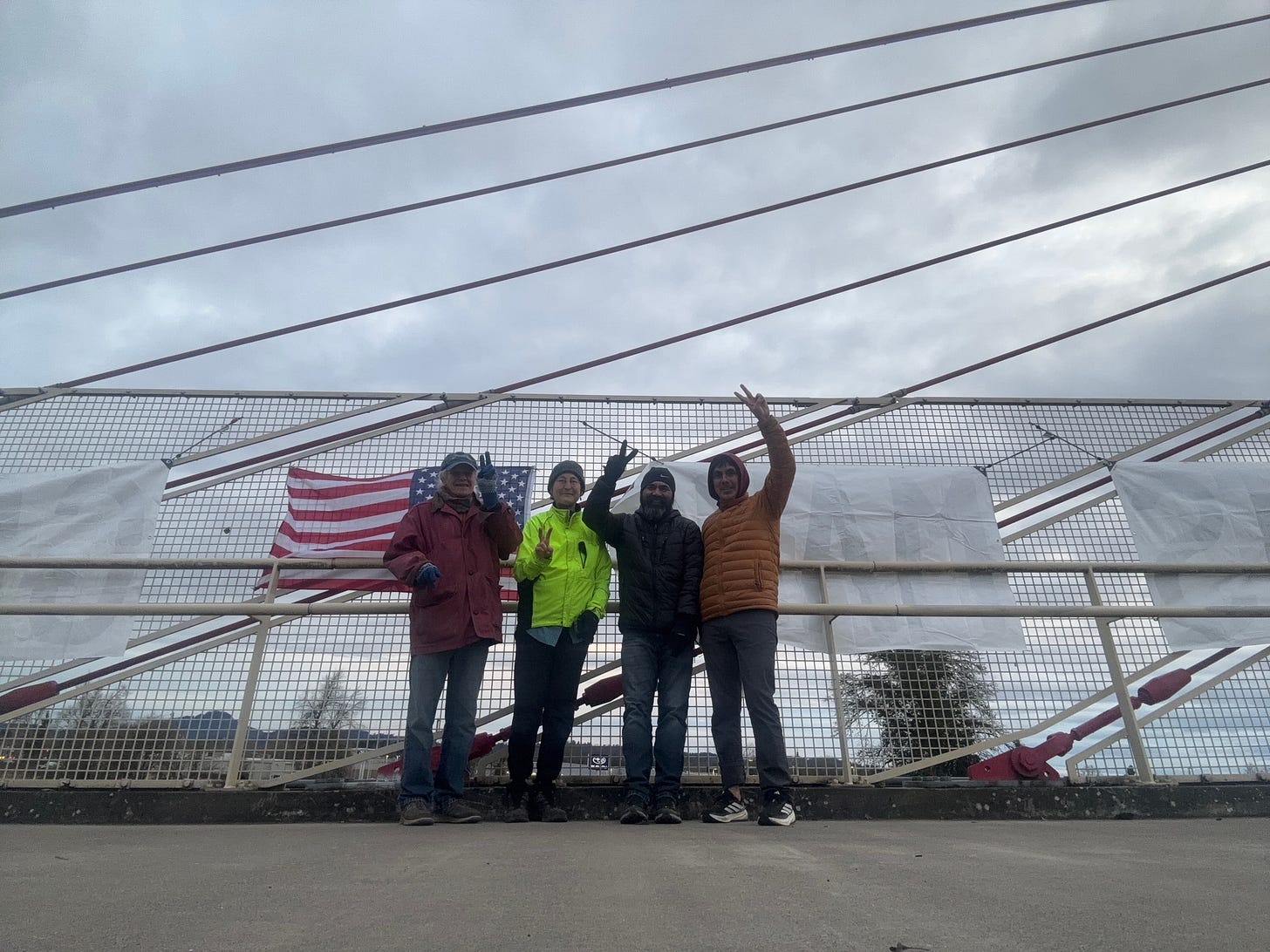 Eugene, Oregon. We meet twice weekly on the Delta Highway bike bridge at evening rush hour