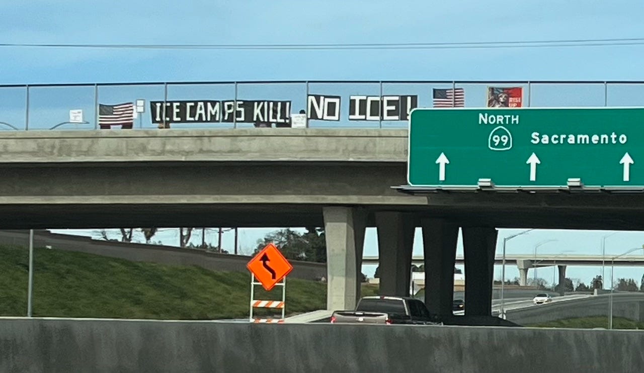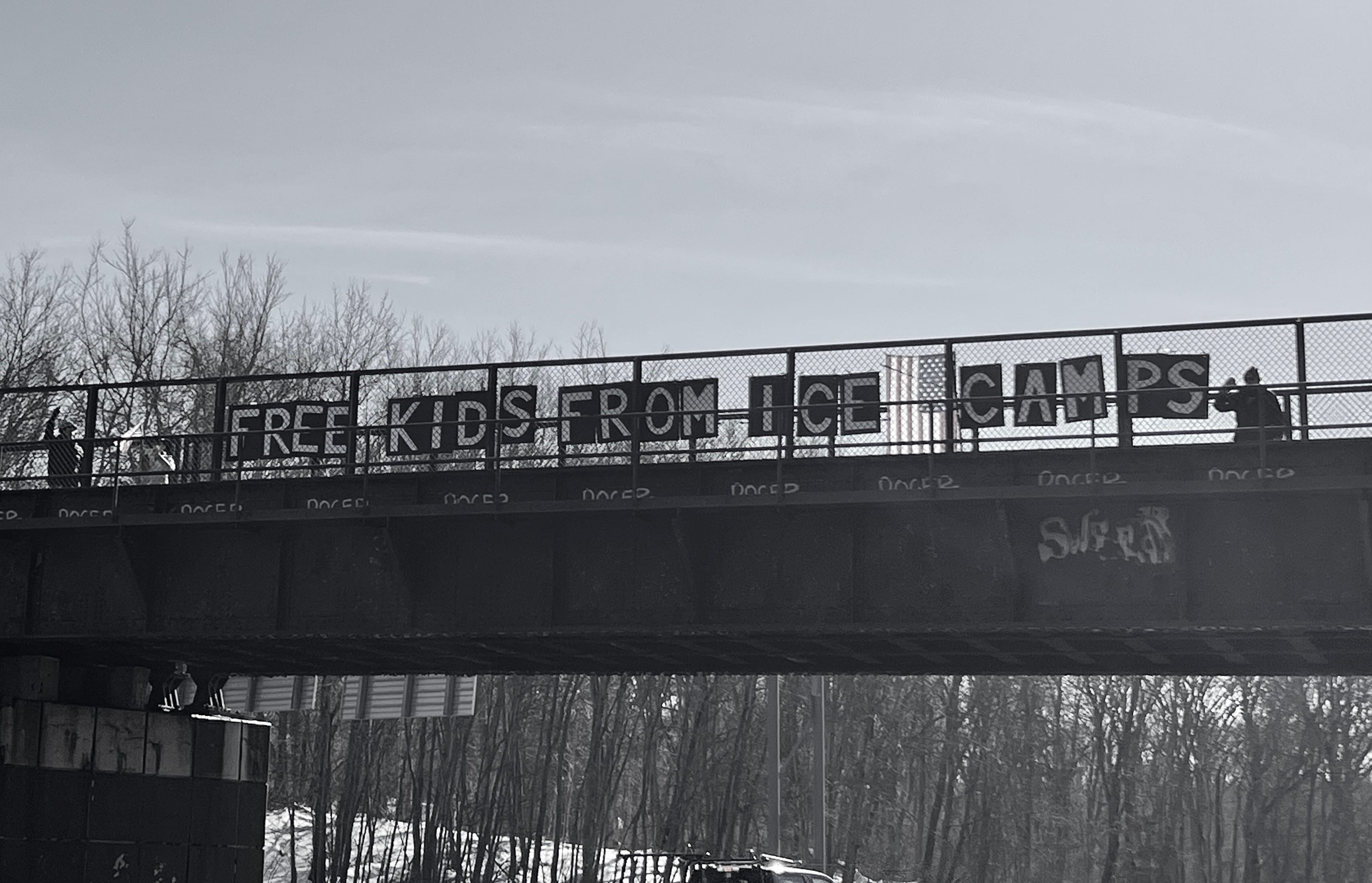 Bridge Brigade in Bakersfield, CA, over the 99 freeway.