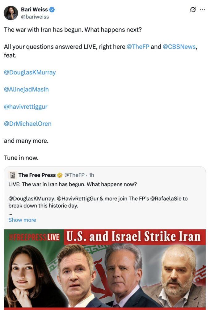 David Klion: “A minority of Americans want a regime change war in Iran, but 100% of CBS’s top-billed experts do.”