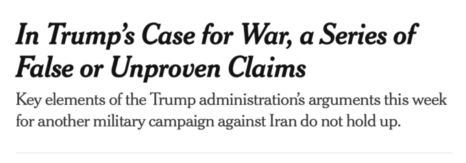 And the NYT would, of course, be intimately familiar with how a case is made to attack a Middle Eastern nation based on “false or unproven claims”….