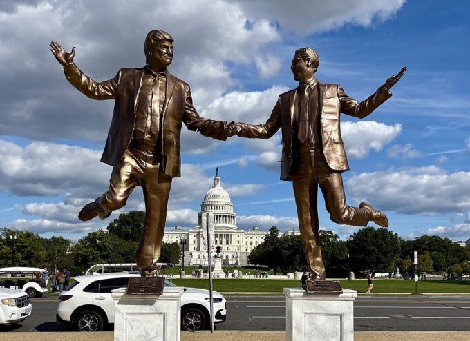 The Trump-Epstein Friendship Statue. Photograph Source: Joe Flood – CC BY 4.0