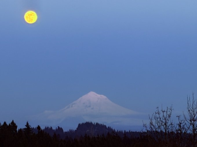 - Blood Moon over Our Little Mountain on Monday evening. (I got locked in the Pioneer Cemetery while taking this photo and had to climb over the spiked gate to get out, like a zombie on the run. After I congratulated myself for not impaling my leg on a sharp iron prong, a neighbor laughingly told me that if I’d simply stood on the white X, the gate would have opened automatically. Always learning the hard way.)