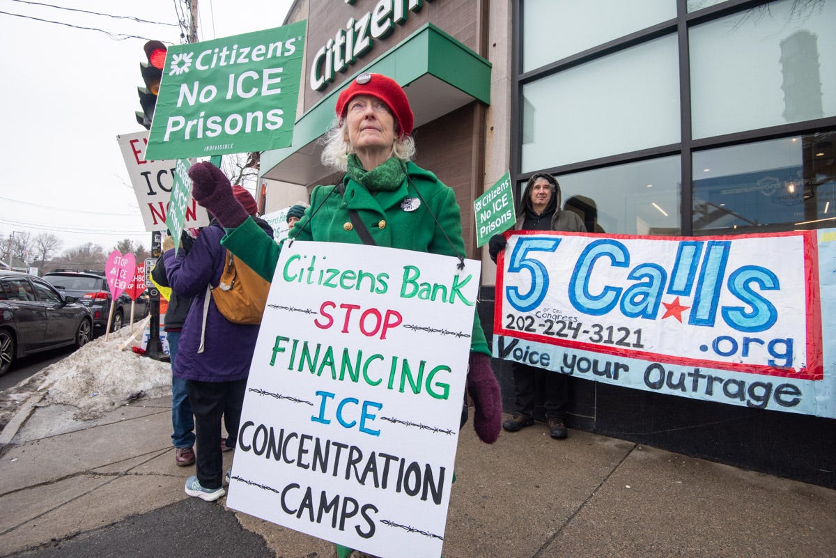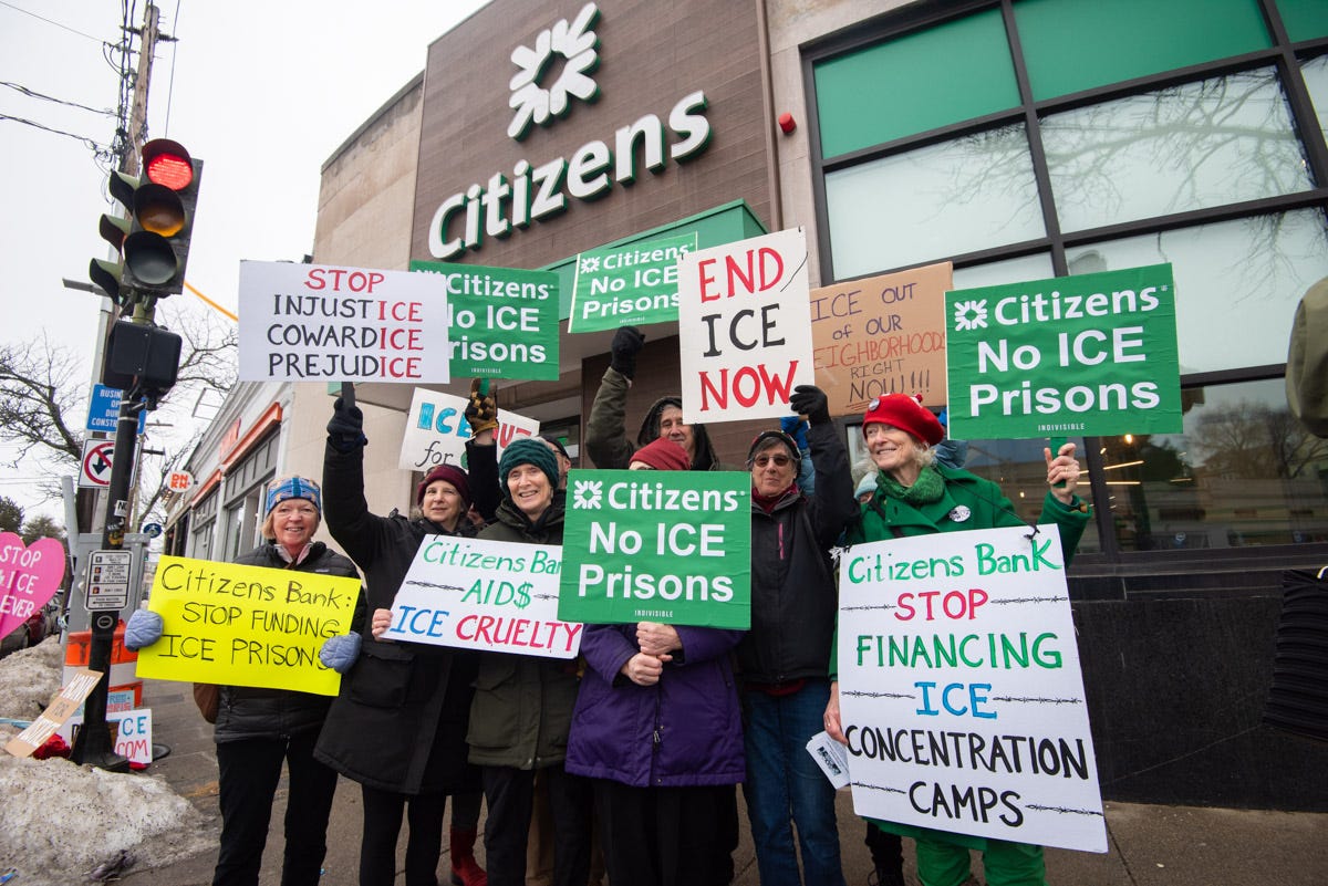 On March 7th Indivisible Progressive Watertown participated in the De-ICE Citizens Bank Coalition day of protest across the northeastern and midwestern U.S. 71 protests were held in 13 states.
