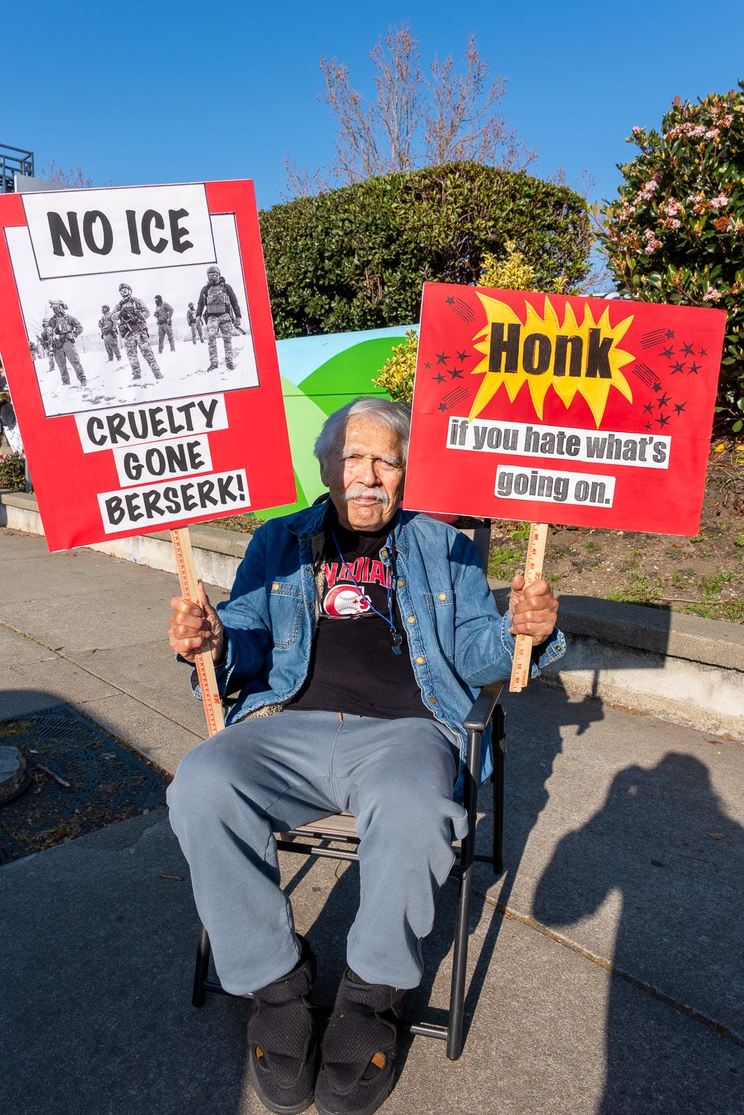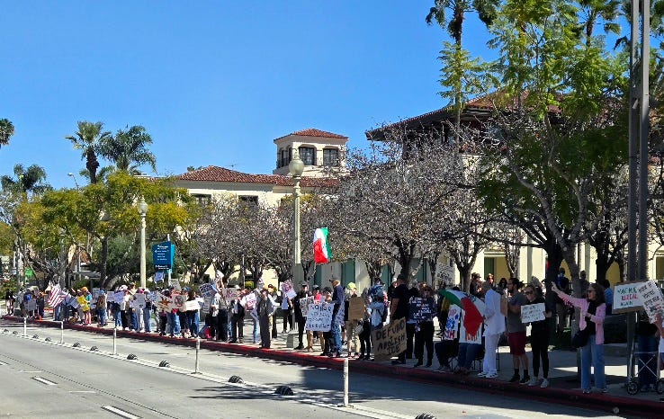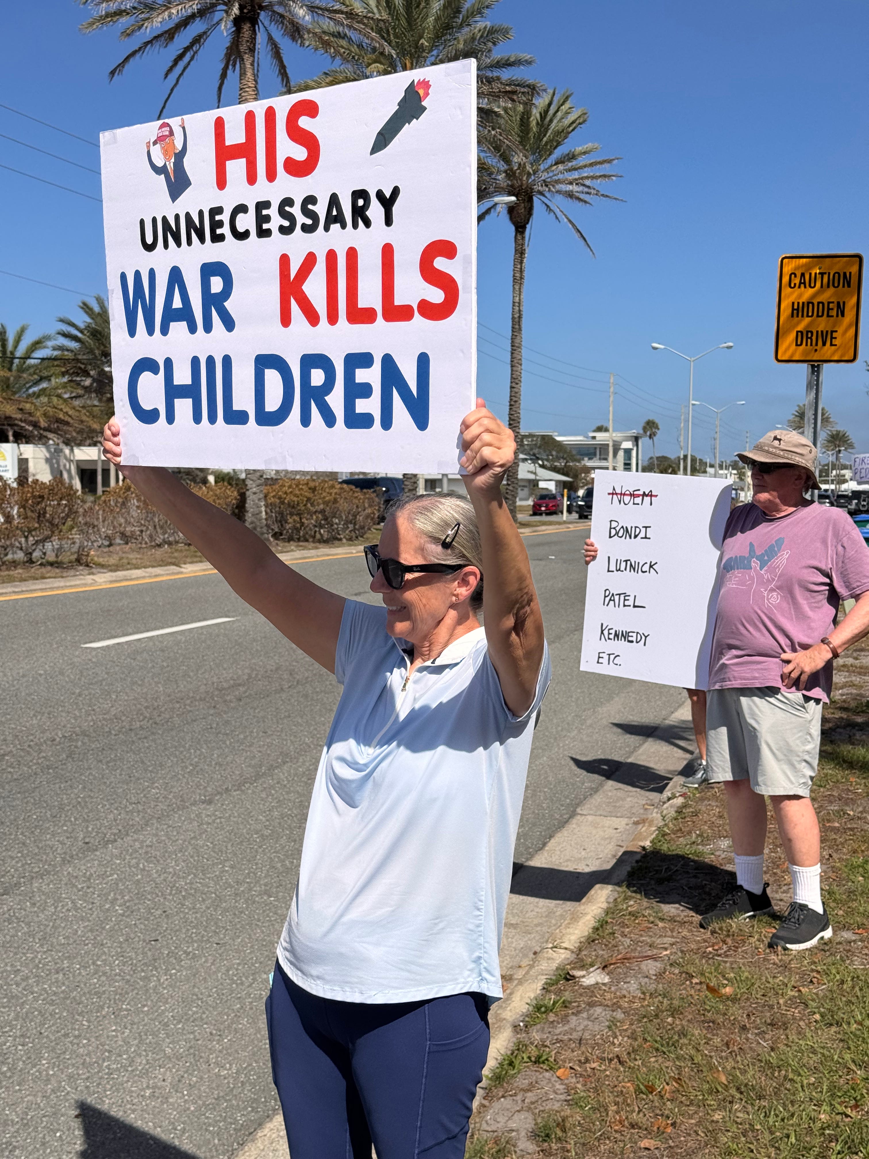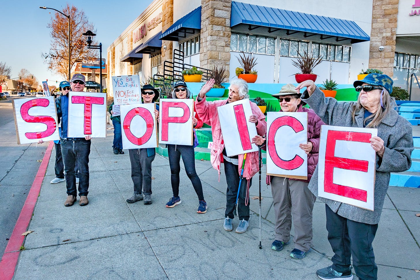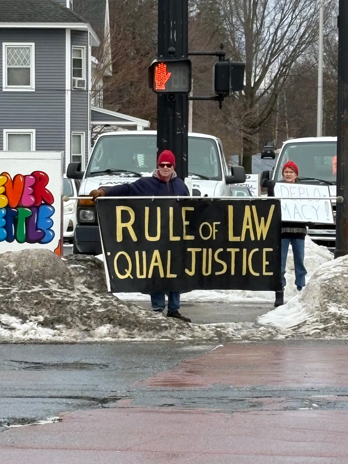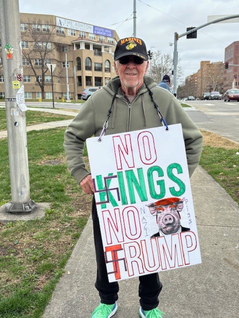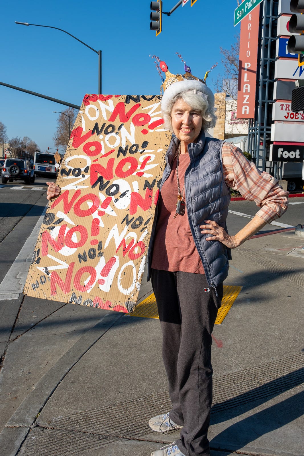 3-7-26… Indivisible Resisters Contra Costa in Walnut Creek, Ca…covered all 4 corners of very busy intersection with wonderful honking support… a great day that I very much needed.