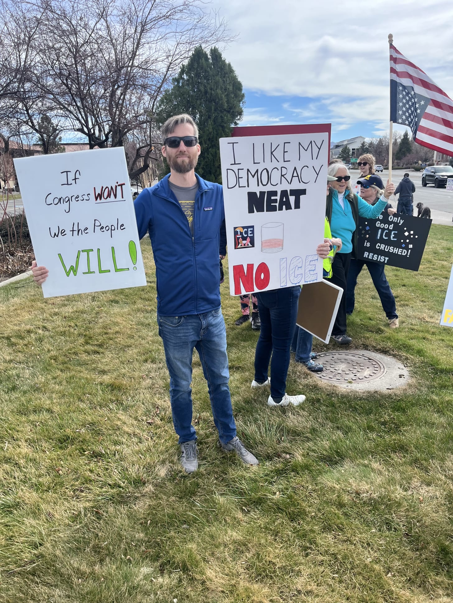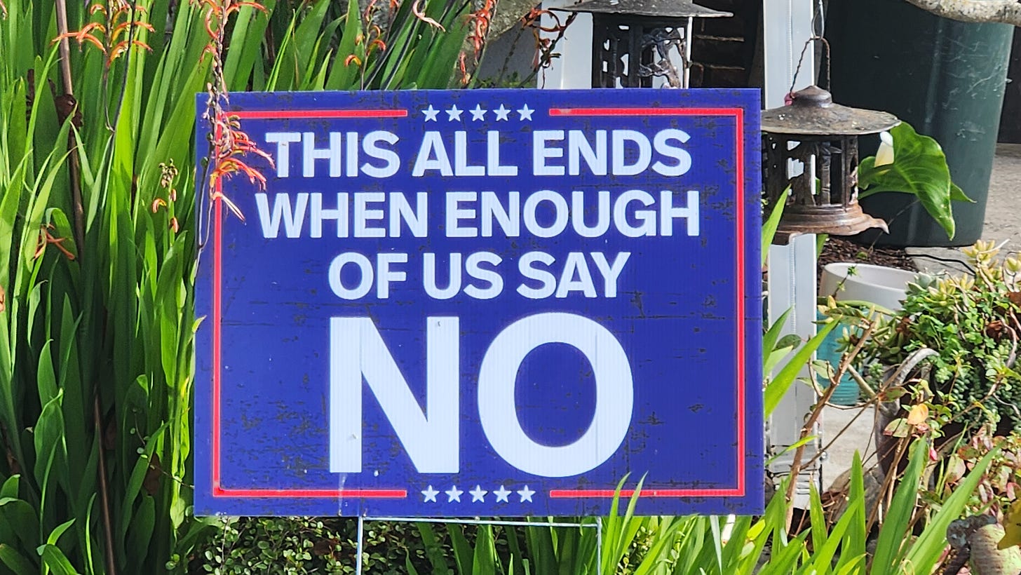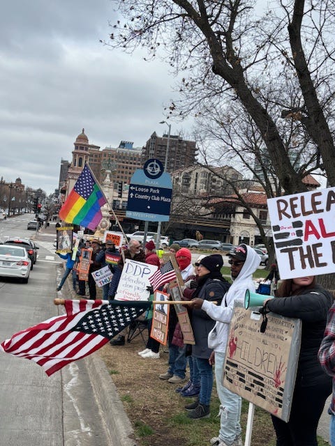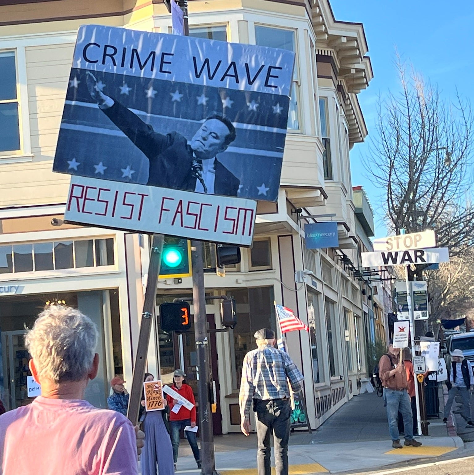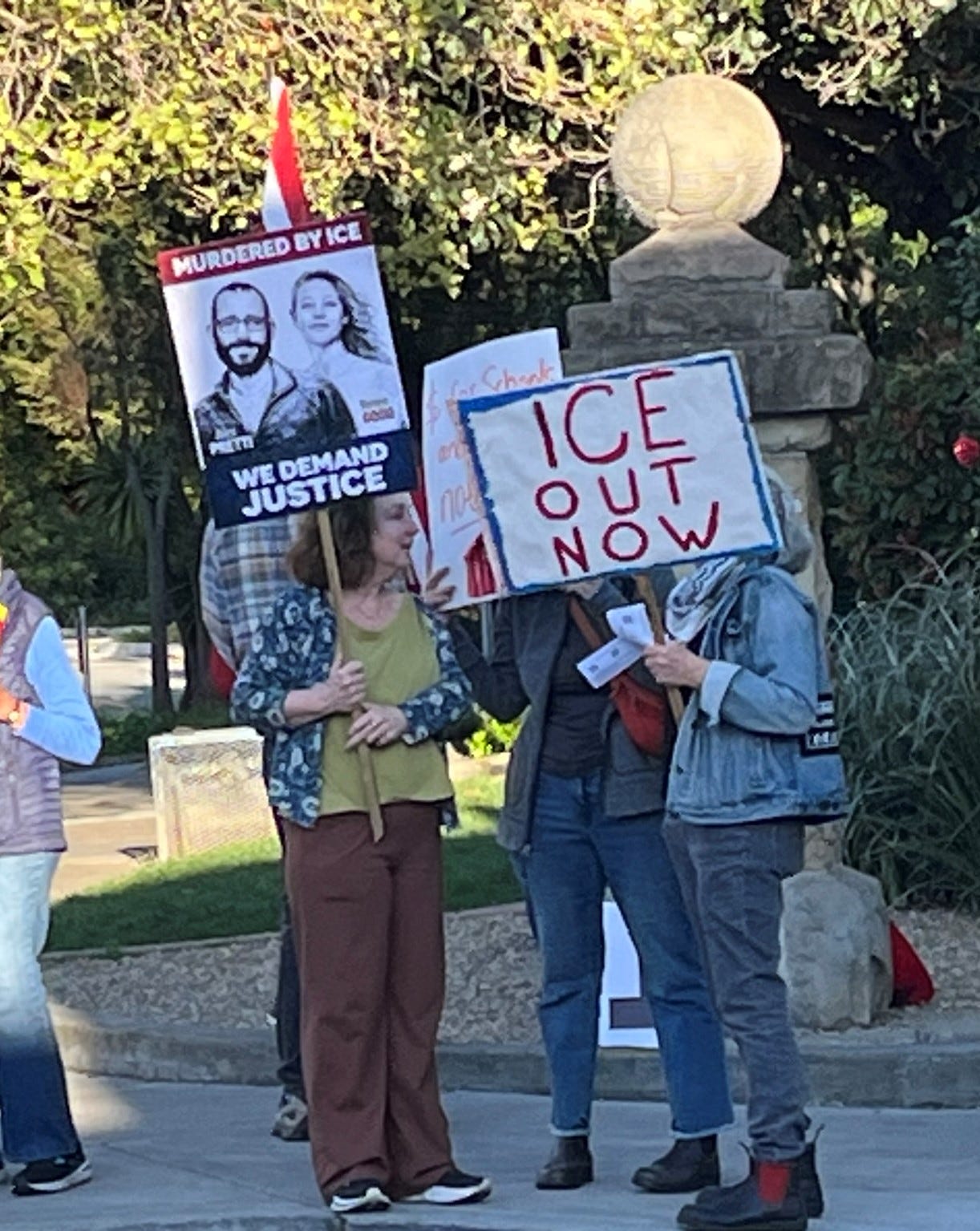 3-7-26… Indivisible Resisters Contra Costa in Walnut Creek, Ca…covered all 4 corners of very busy intersection with wonderful honking support… a great day that I very much needed.
