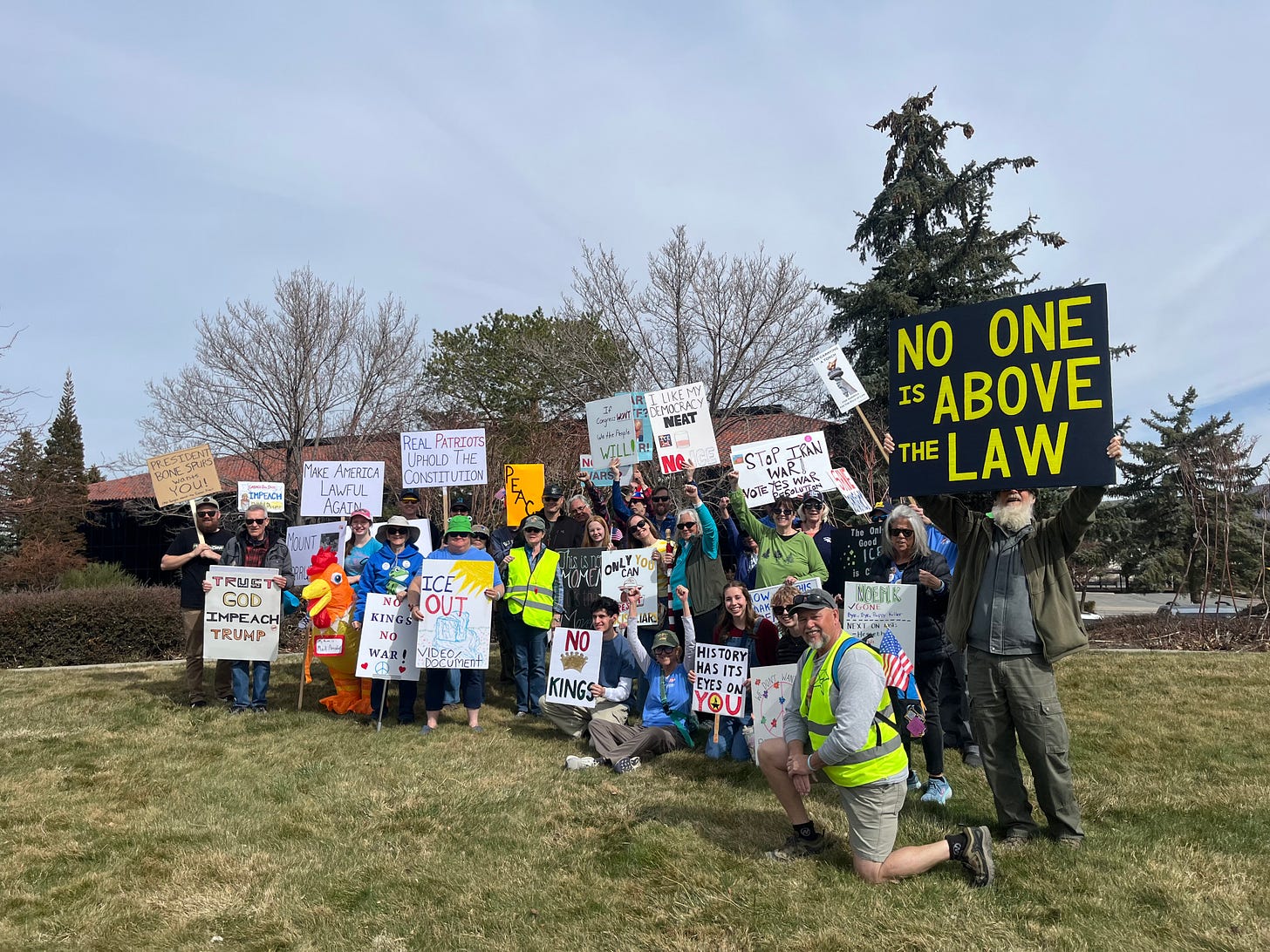 50 plus patriots at Stand Up Saturday Protest in Reno, NV in front of our Congressman’s office organized by Indivisible Northern Nevada
