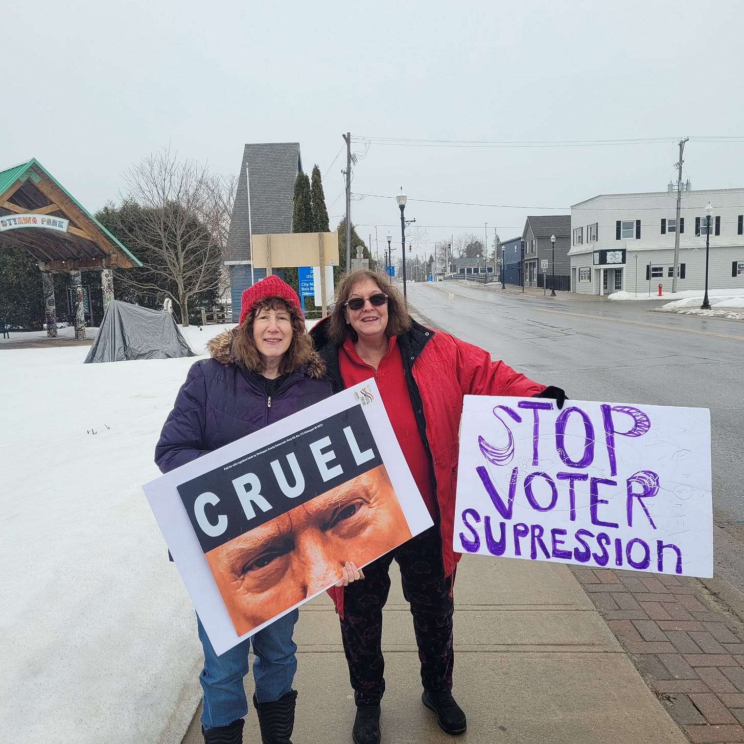 We had four on our Protest Corner in Chestertown, MD today. We are unrepresented by Andy Harris, MD’s 1st Congressional District lackey to Trump.