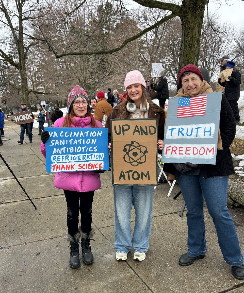 Stand Up for Science protest organized by Wellesley Defends Democracy, in Wellesley MA