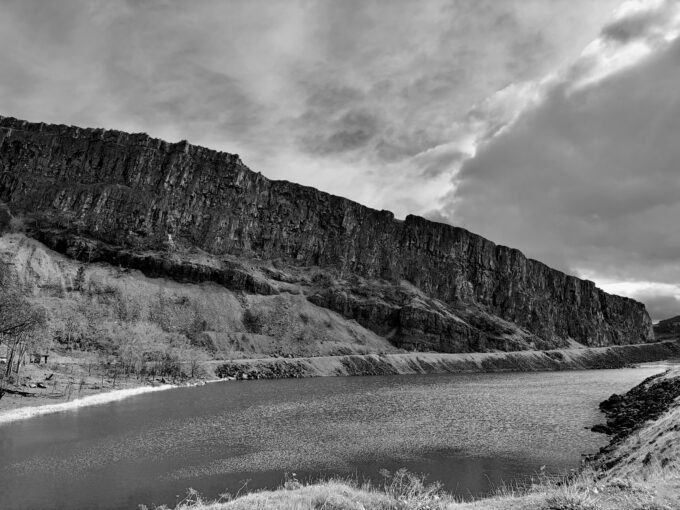 Sick of watching, reading and writing about yet another war, Lola and I took off for one of my favorite retreats in the Pacific Northwest, variously called the Maze, the Syncline, or the Labyrinth, depending on who you first heard about it from. For me, it will always be known as the Coyote Wall, getting that name from my late friend Chuck Williams, who said the weird geology could only have been designed by the Great Trickster.