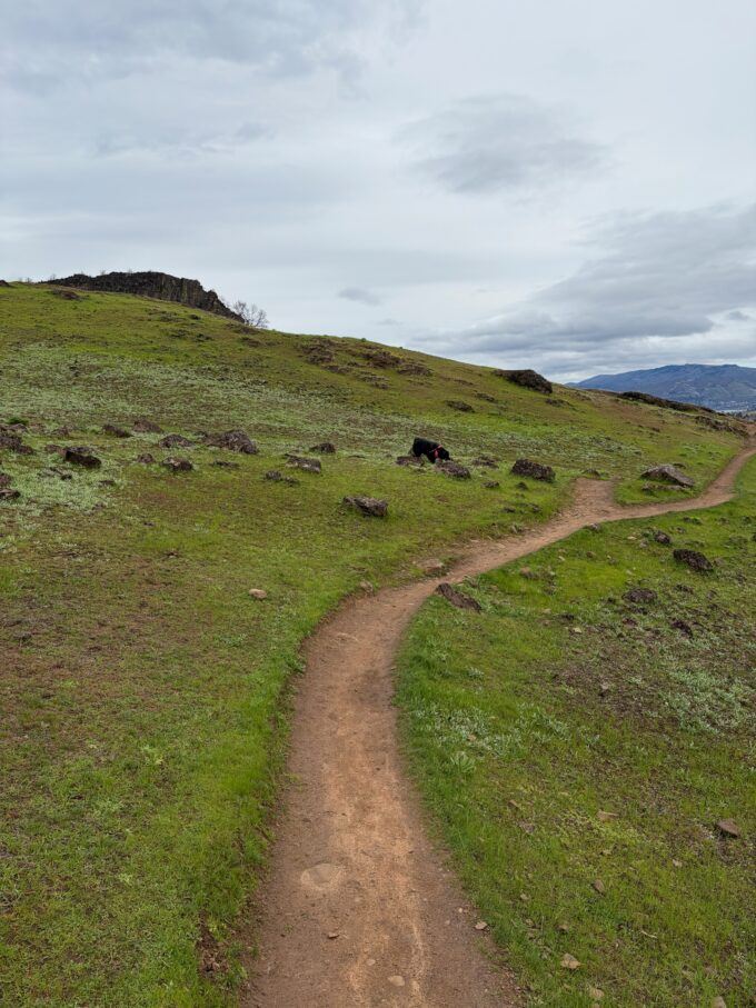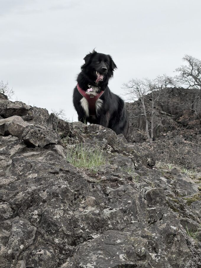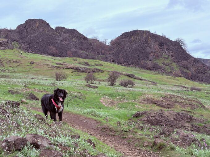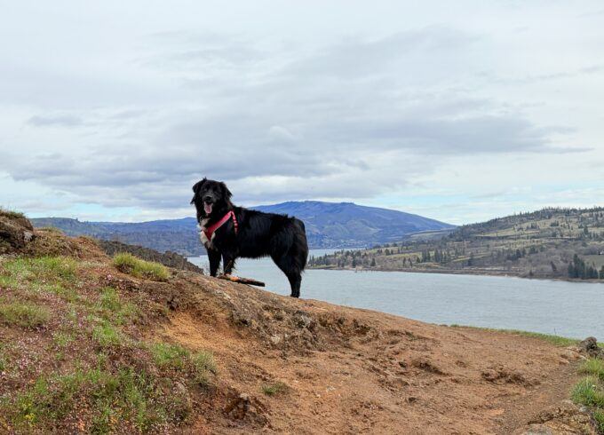 Lola on the cliff above the Columbia River.