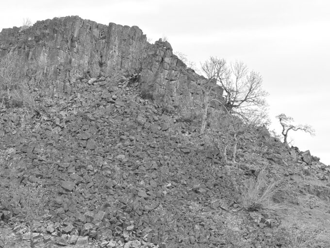 The Coyote Wall is situated near the exact point where the Columbia Gorge almost instantly transitions from temperate rainforest to high desert; as such, the landscape was a “power spot”, as Chuck put it, for the Columbia River tribes. (Chuck was a descendant of Chief Tumulth of the Cascades (Watlala) tribe.) There are vision pits and pictographs and petroglyphs all over this unique, wildly sloping part of the Gorge.