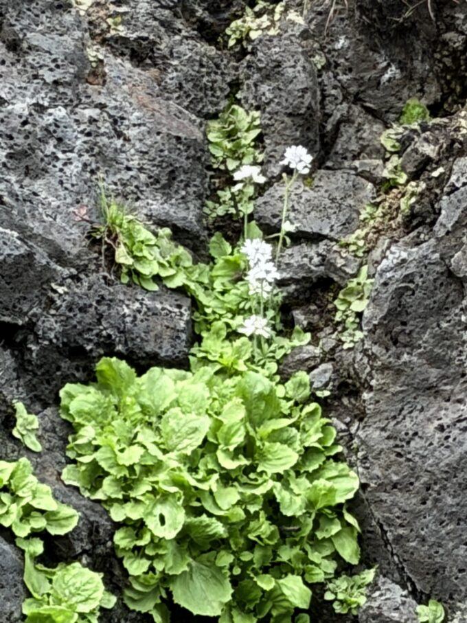 White saxifrage clinging to a basalt cliff.