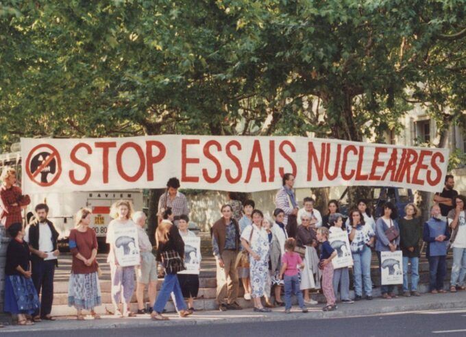 Demonstration against nuclear tests in Lyon, France (1980). Photograph Source: Community of the Ark of Lanza del Vasto – CC BY-SA 3.0