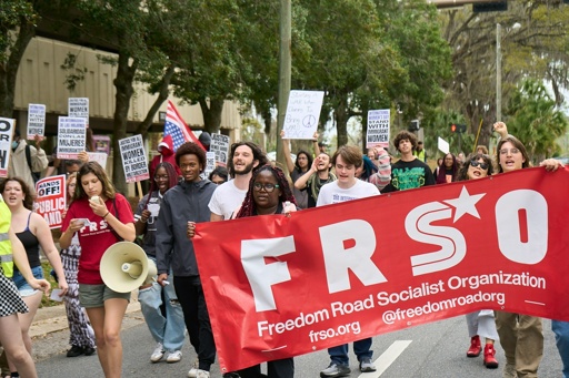 The Freedom Road Socialist Organization was joined by groups like the Tallahassee Community Action Committee, the Tallahassee Immigrant Rights Alliance, and student groups like FAMU Students for a Democratic Society (SDS), Tallahassee SDS, and FSU YDSA.