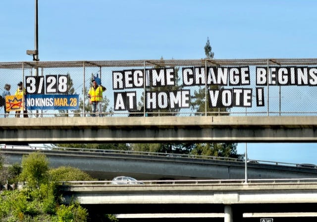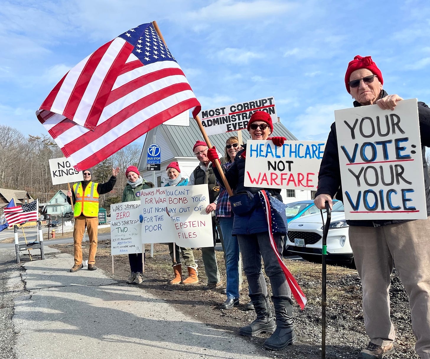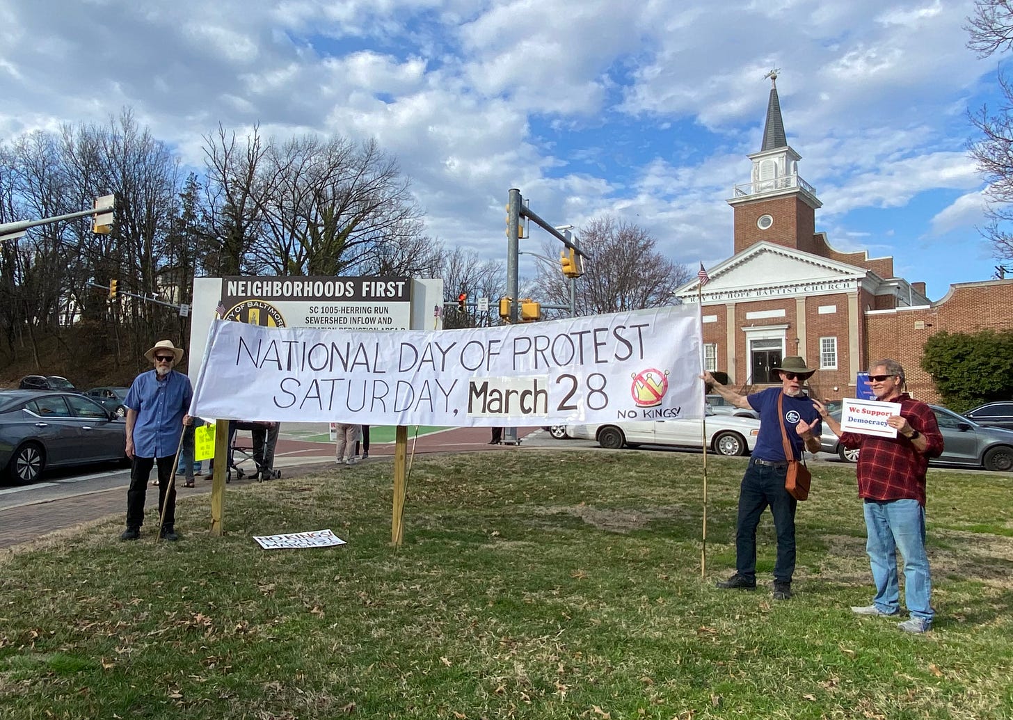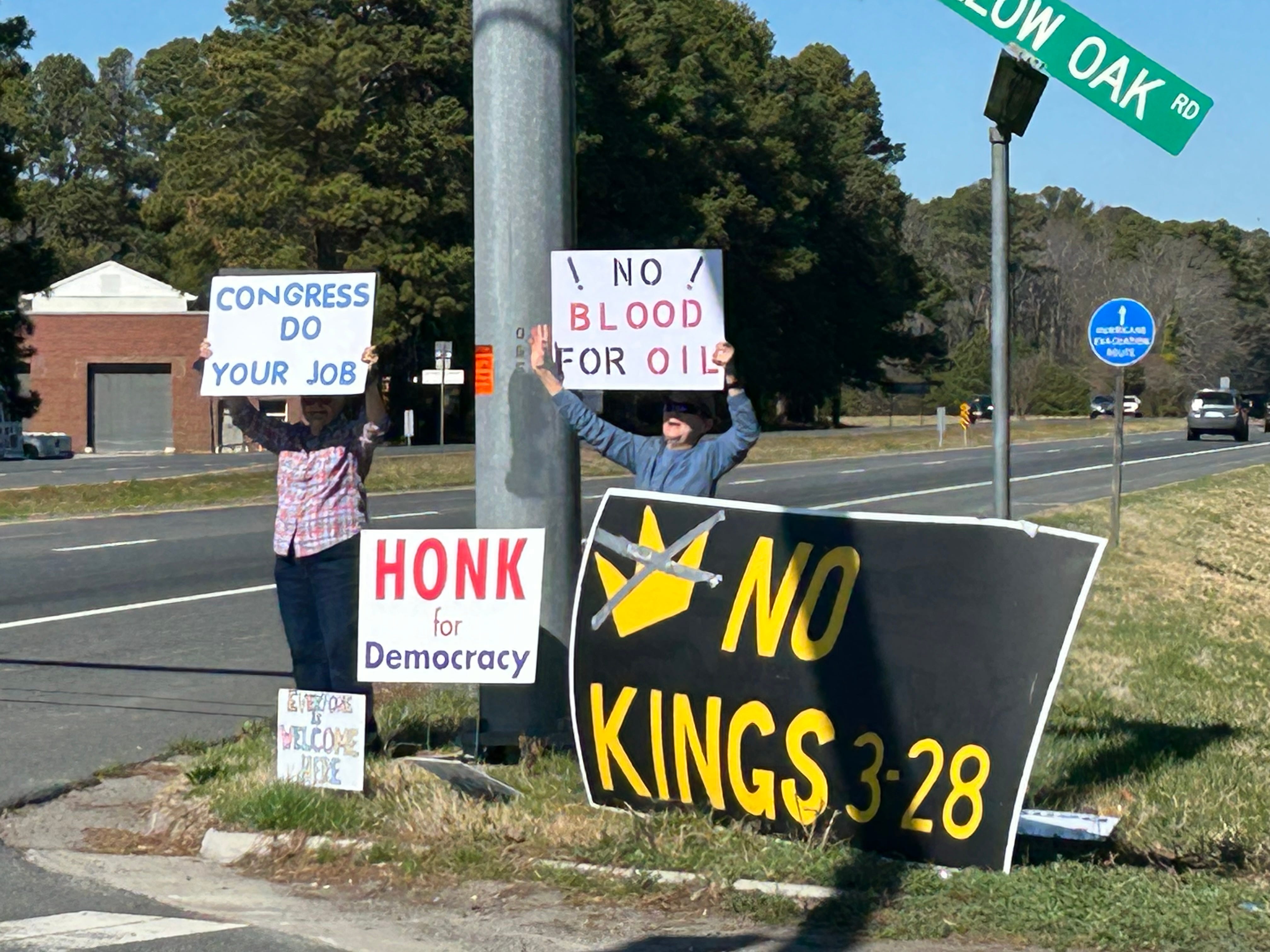 Small groups of protesters are meeting at the few traffic lights along Virginia’s Eastern Shore. Protesters at the Eastville, Virginia traffic light are also advertising for our No Kings Rally in Machipongo.