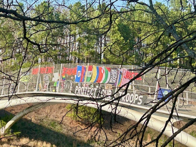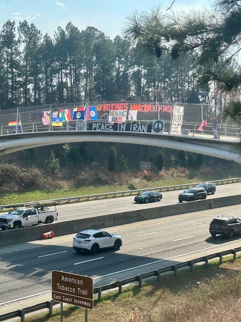 Engaged Defenders 4 Democracy (ED4D) on the ATT Pedestrian Bridge, Durham NC every week. On March 25th we’ll celebrate one year on the bridge.