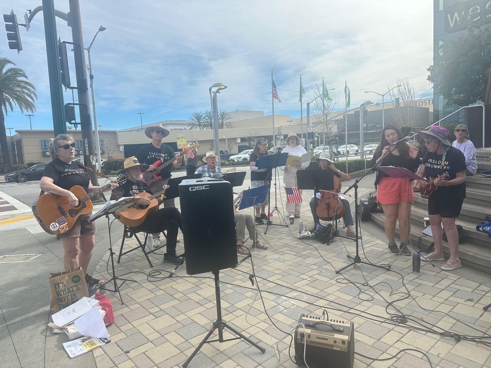 The Freedom Strummers are, and have been, at every Saturday Indivisible San Mateo protest for months.