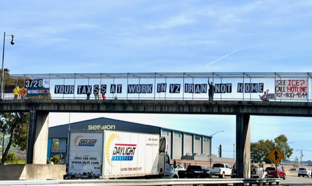 Democracy Warriors’ Visibility Brigade in Santa Rosa, CA. Lots of horn honking and waving!