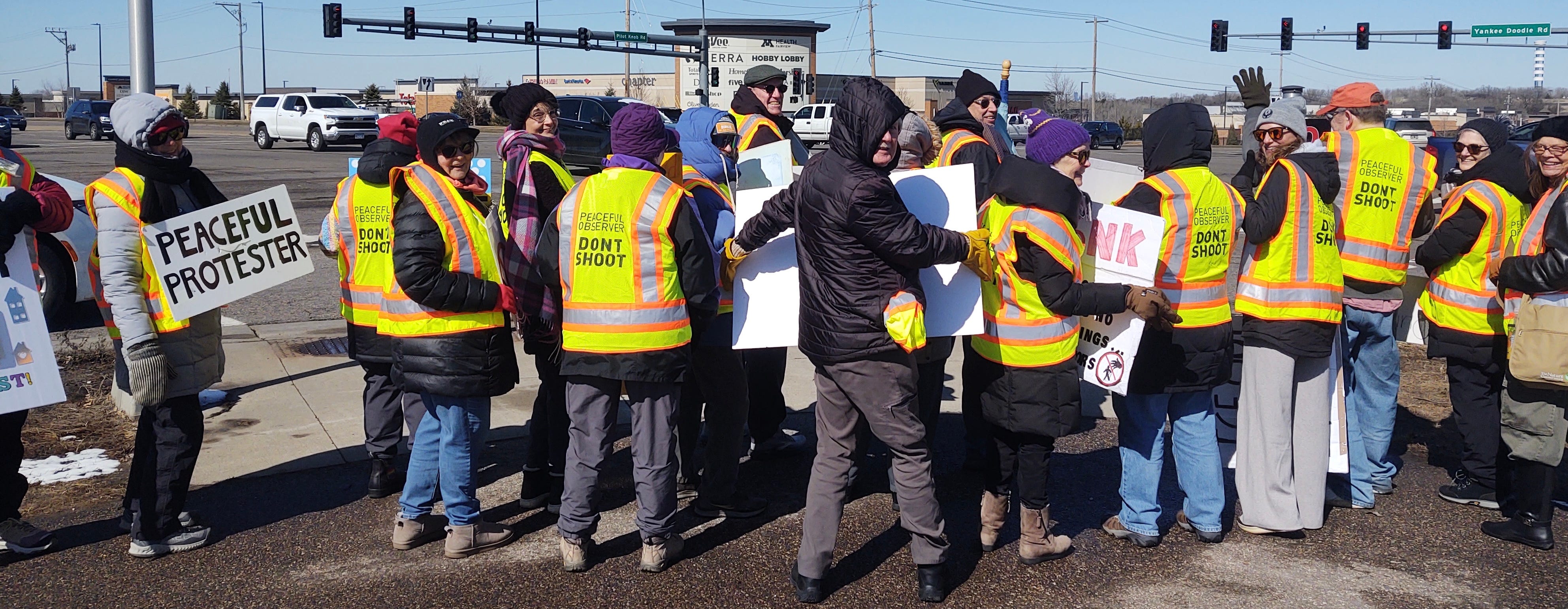 Sign brigade-Eagan. MN, Complete with Peaceful protester vests!