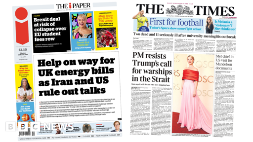 arrow-up11arrow-down1external-linkThe Papers: 'Help' for energy bills and PM 'resists' Trump warships callwww.bbc.comrssMB to BBCEnglish · 2 days agomessage-square0linkfedilinkfile-text
