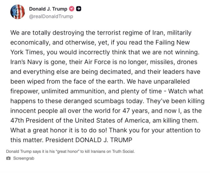 Gianmarco Soresi: “It isn’t a war? It’ll be a war when Trump can claim he stopped it.”