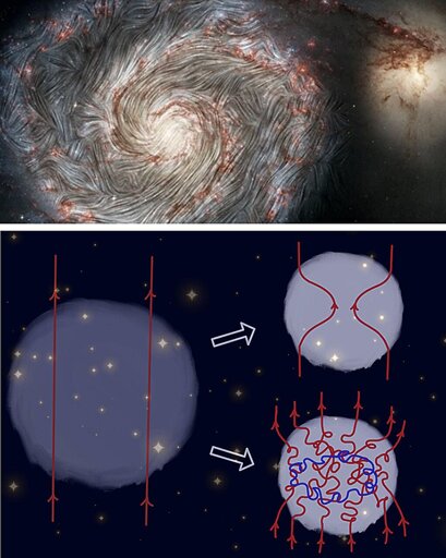 How fast can a galaxy build ordered magnetic fields spanning thousands of light-years? Existing theories say several billion years, but observations of galaxies in our universe imply shorter timescales. In a study published in the Physical Review Letters and highlighted in the Physics magazine, scientists propose an explanation that resolves this contradiction. They say that the collapse of plasma clouds during the formation of galaxies could significantly accelerate the growth of these magnetic fields.