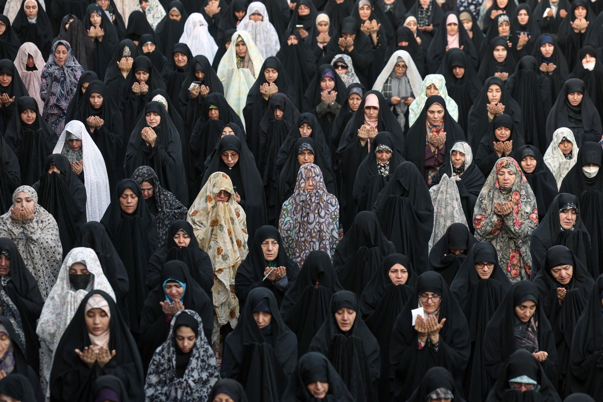 Iranian women perform a prayer for rainfall at the Saleh Shrine in Tehran, Iran, on Nov. 14, 2025. (Stringer / AFP / Getty Images)