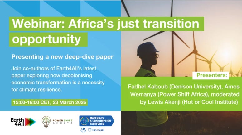 We will discuss these ideas in more detail during the upcoming Earth4All Deep-Dive Launch Webinar on Africa’s just transition. Read the full paper here and RSVP for the webinar here. I hope many of you will join the conversation on Monday March 23, 2026 at 10am EDT or 5pm EAT.