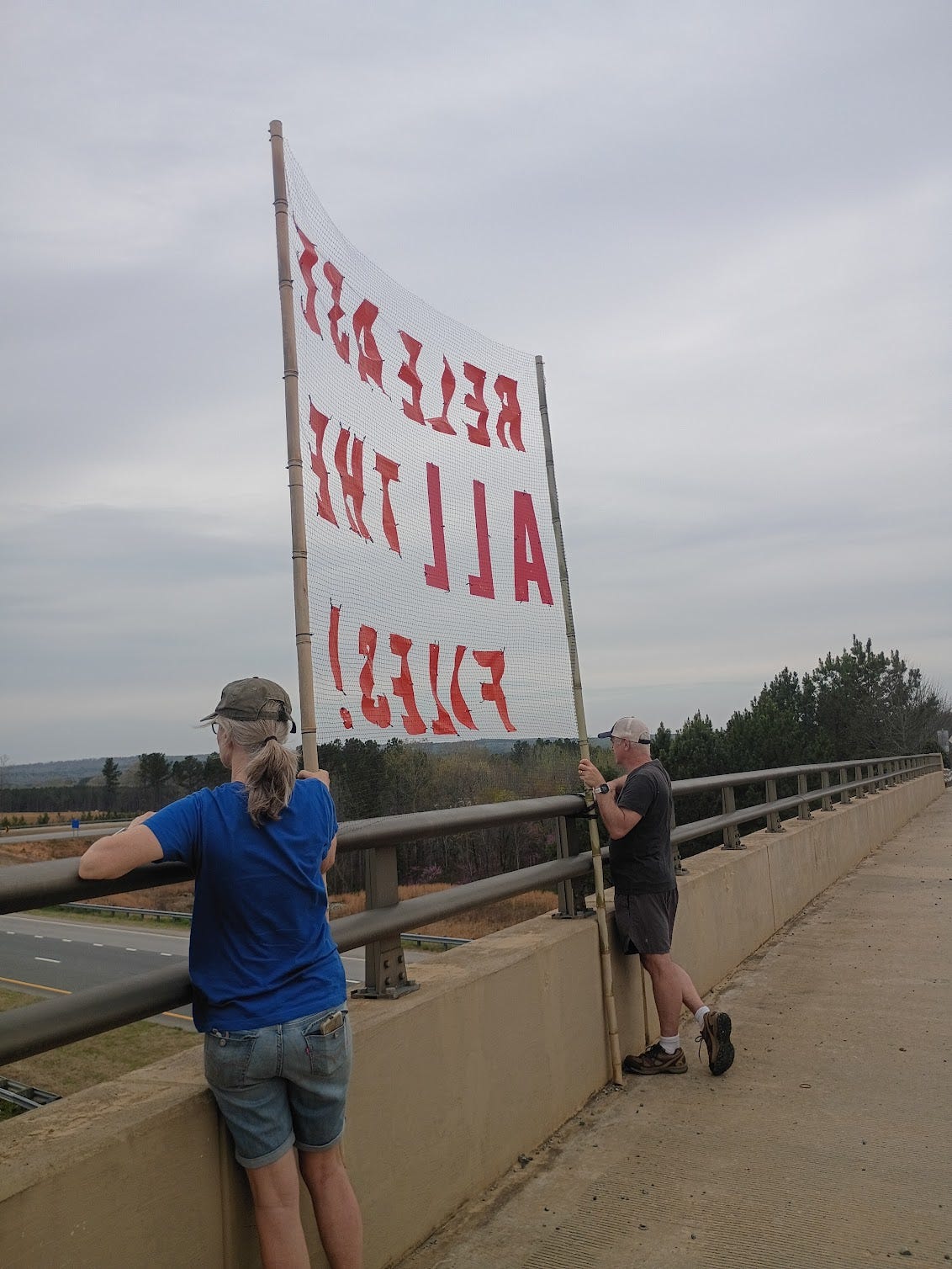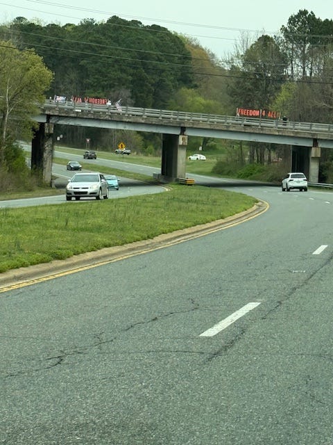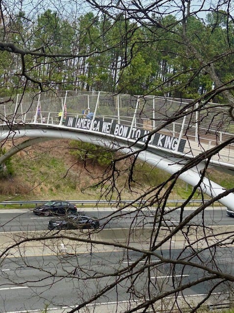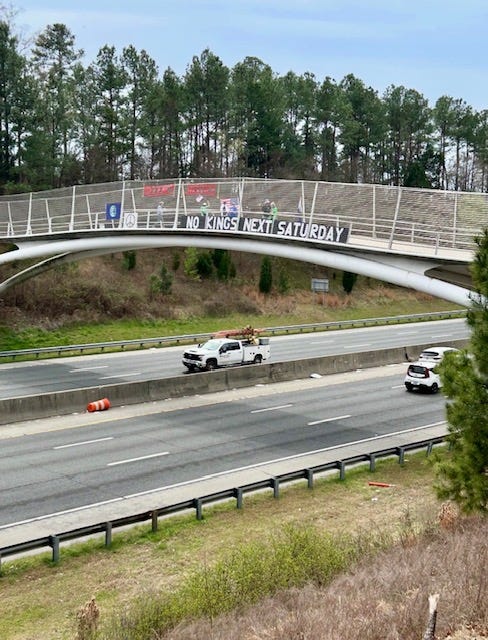Sharing pictures from one of 23 bridges as part of the Engaged Defenders for Democracy Triangle Unified Bridge Brigade. ✌🏼 This one is in Raleigh.