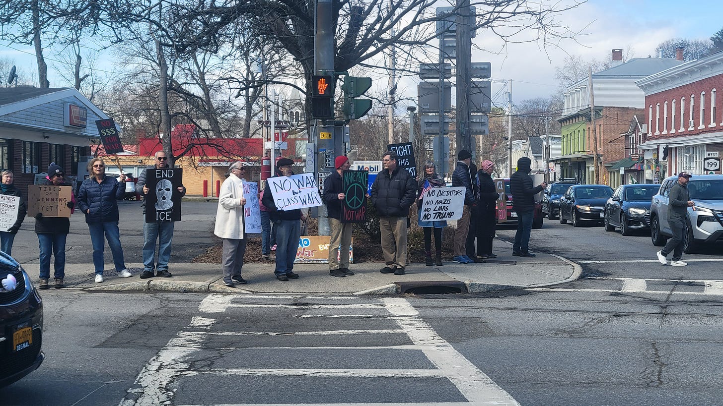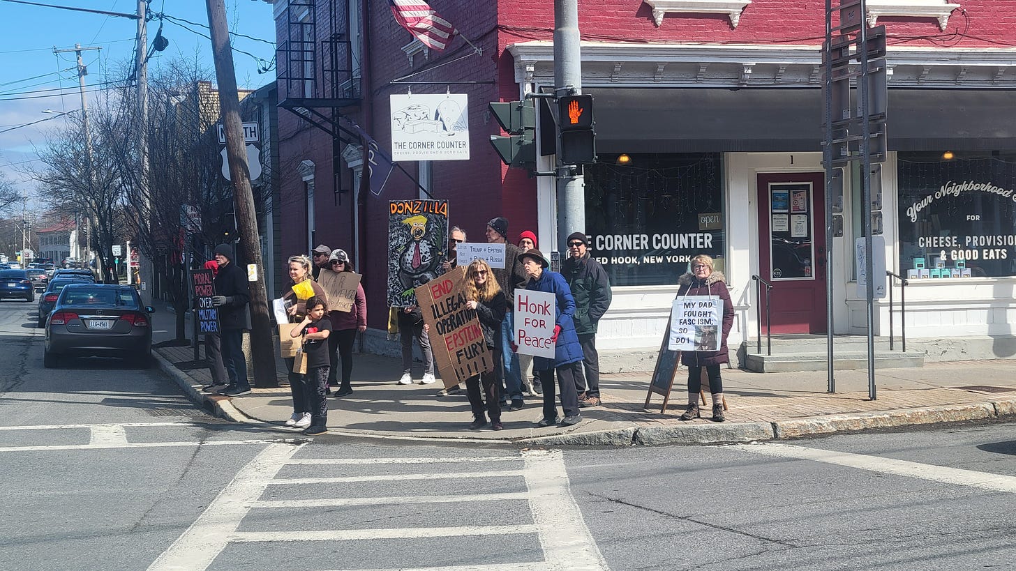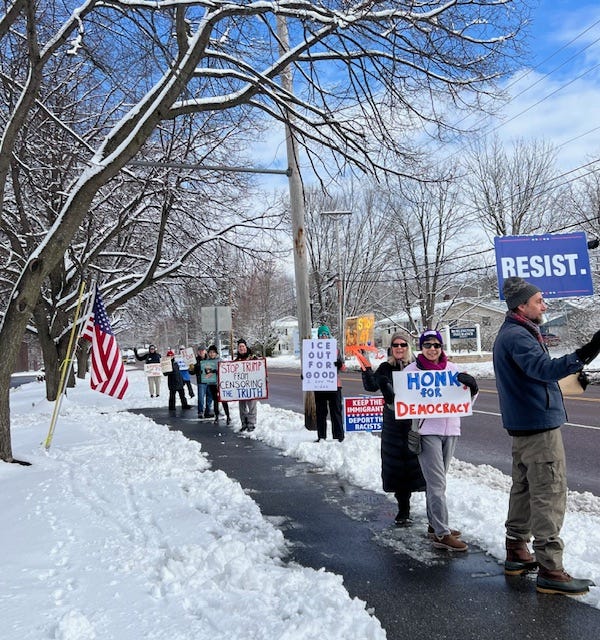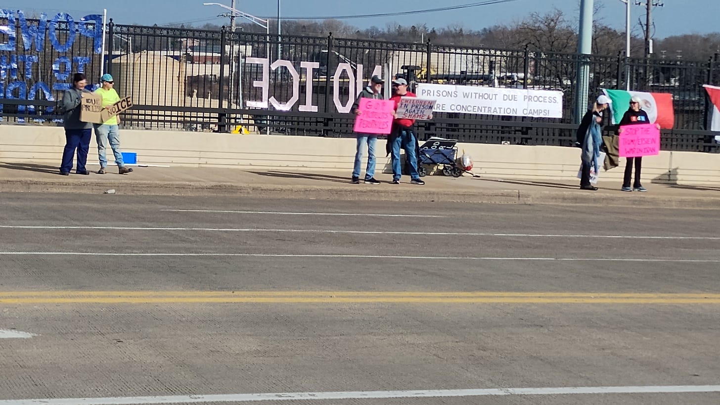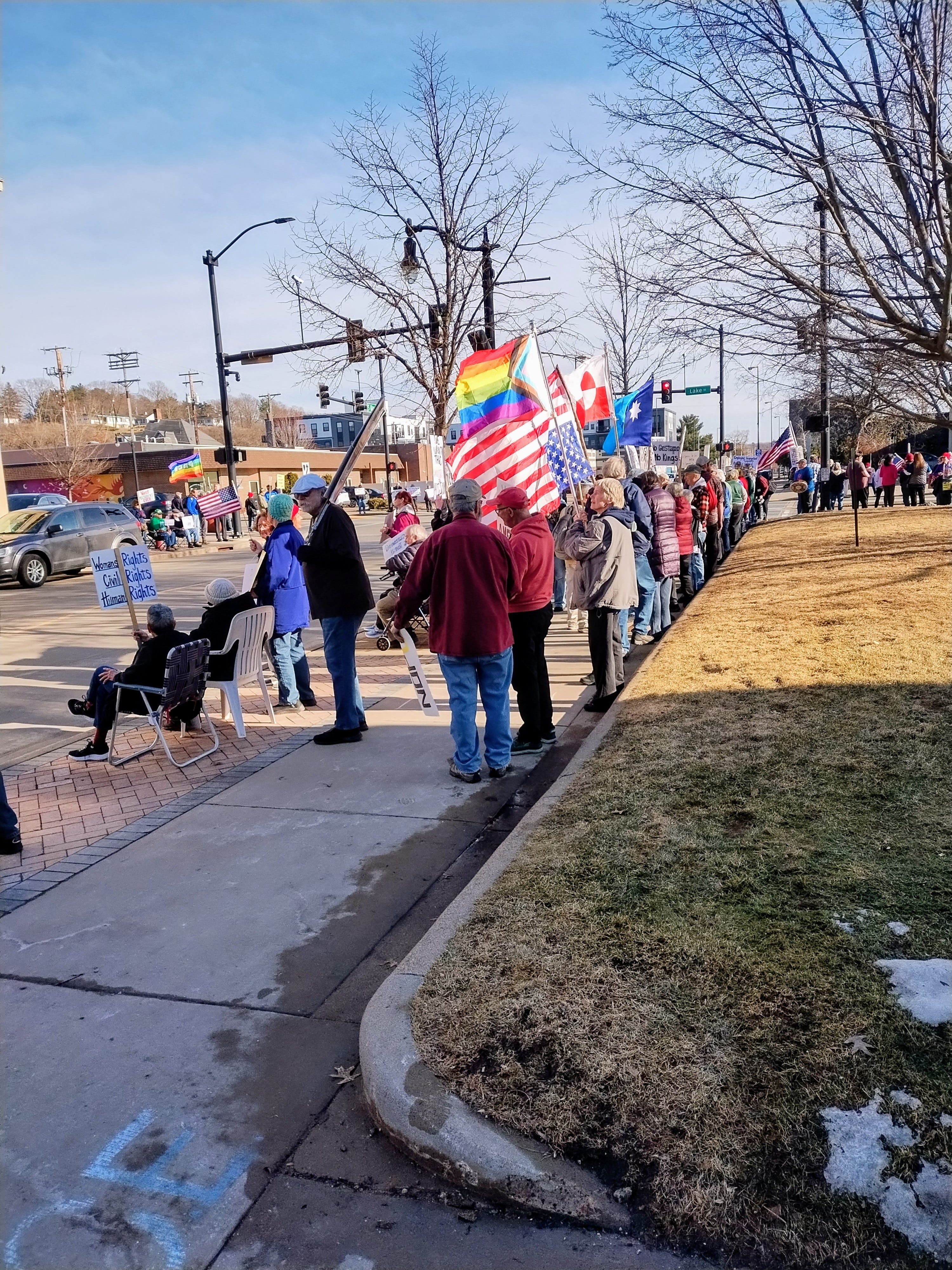 Eau Claire, Wisconsin protestors out in force on March 4th, one year anniversary of protesting every week on the corners by the federal courthouse.