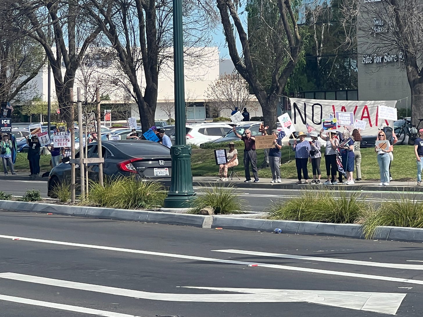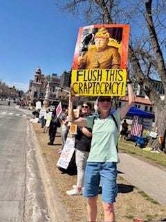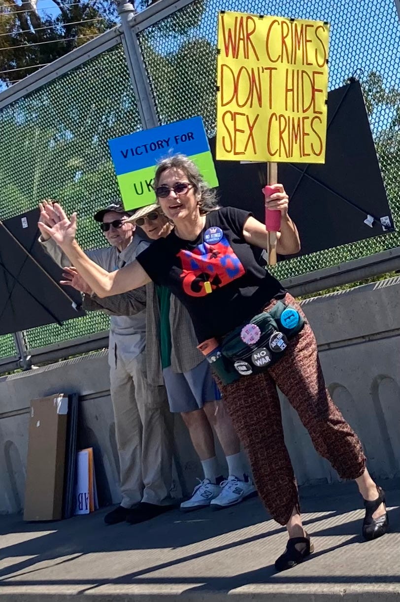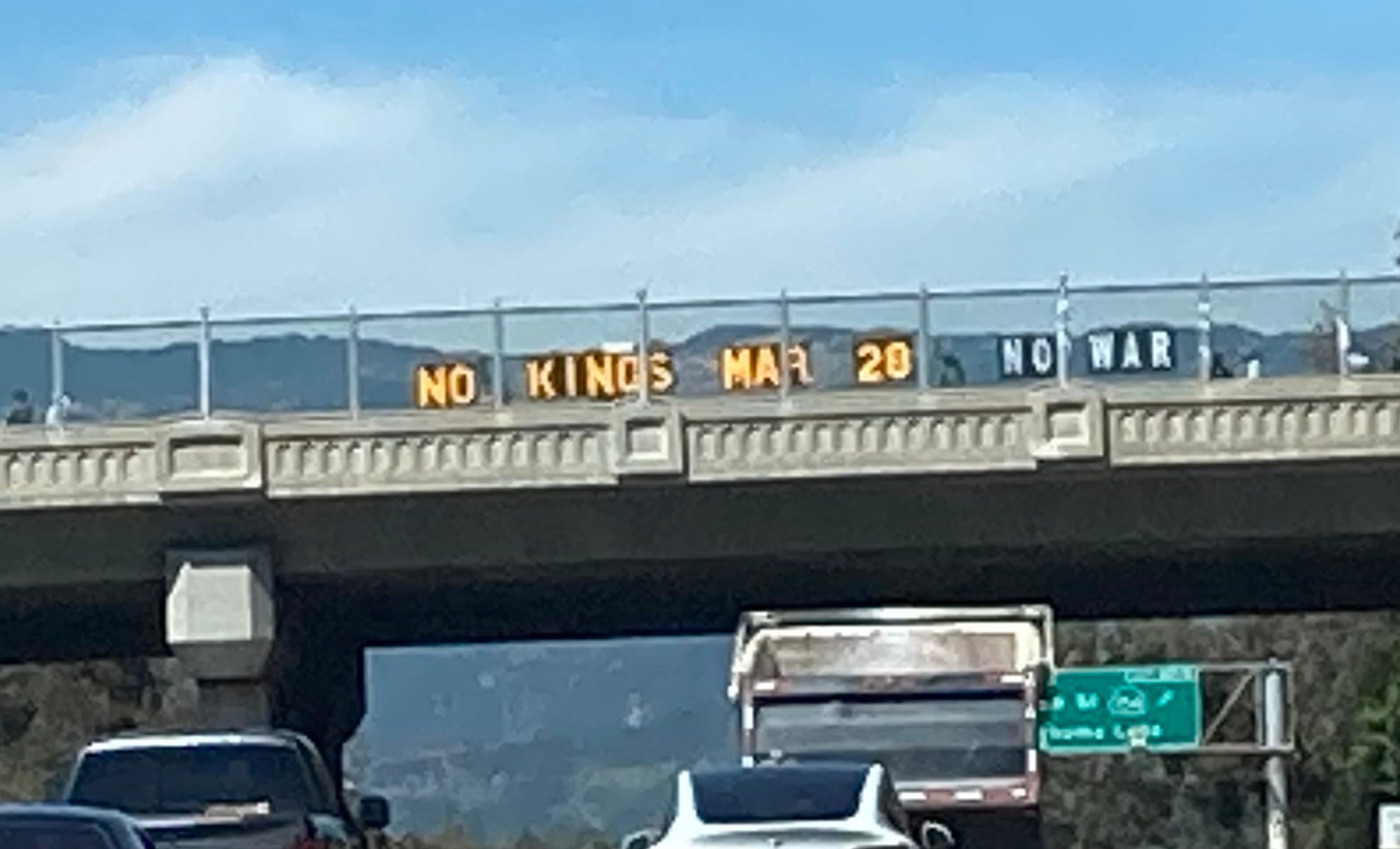 Santa Barbara, CAI’m an Oregon bridge brigadier on vacation in Santa Barbara, giving the waves and honks, and radicalizing my sister, while a friend at home carries on hanging banners (with help of passersby)! NO KINGS, March 28!!’