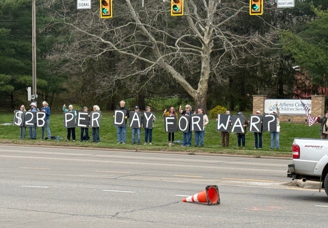 This is from Athens Ohio on 3/20/26. We had 250+ honks and only 7 middle fingers.