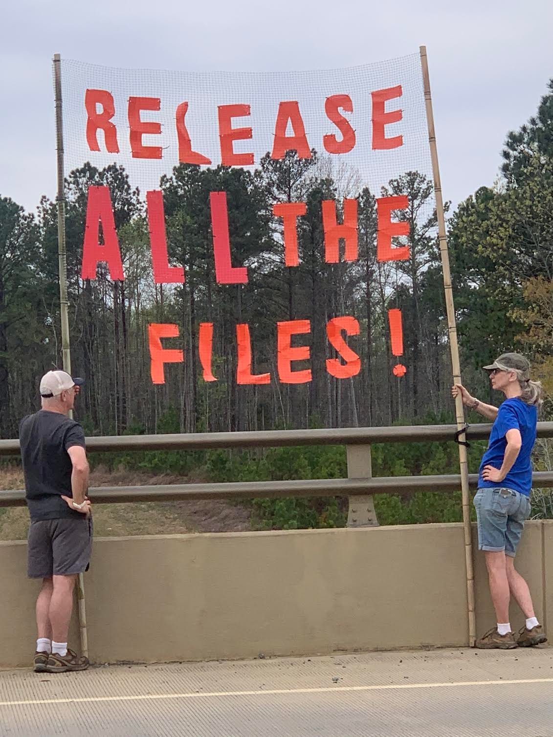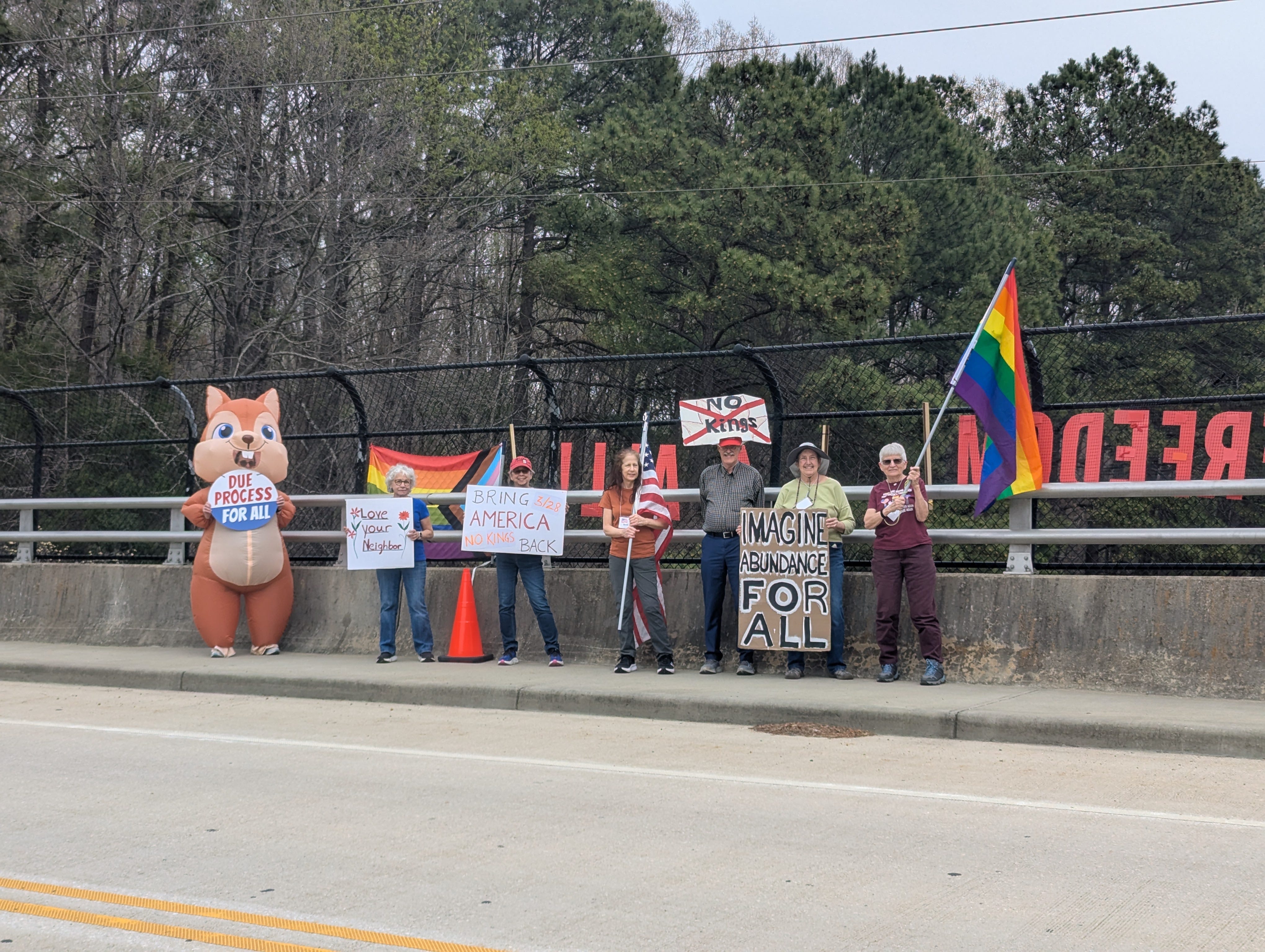 Hi! We’re the Chatham Bridge Brigade in Pittsboro. We’re with Engaged Defenders for Democracy and were one of 23 bridges taking part in the Triangle Unified Bridge Brigade.