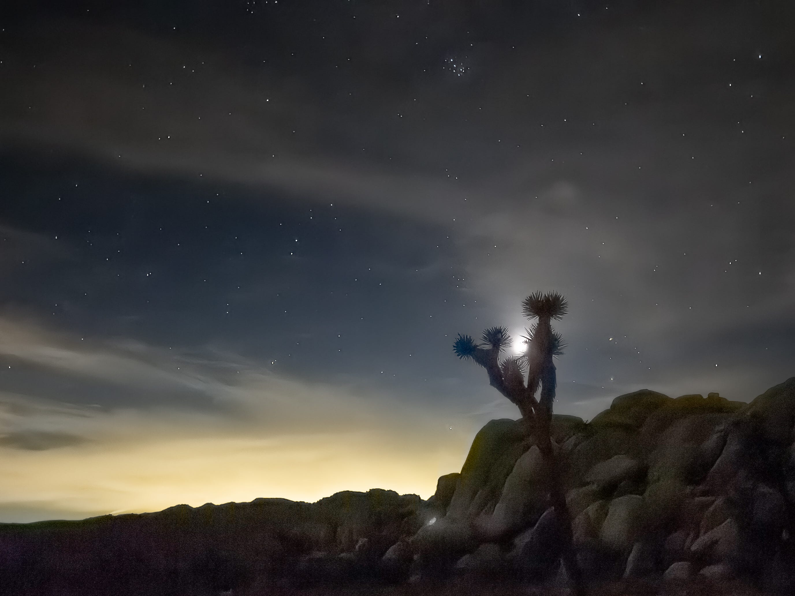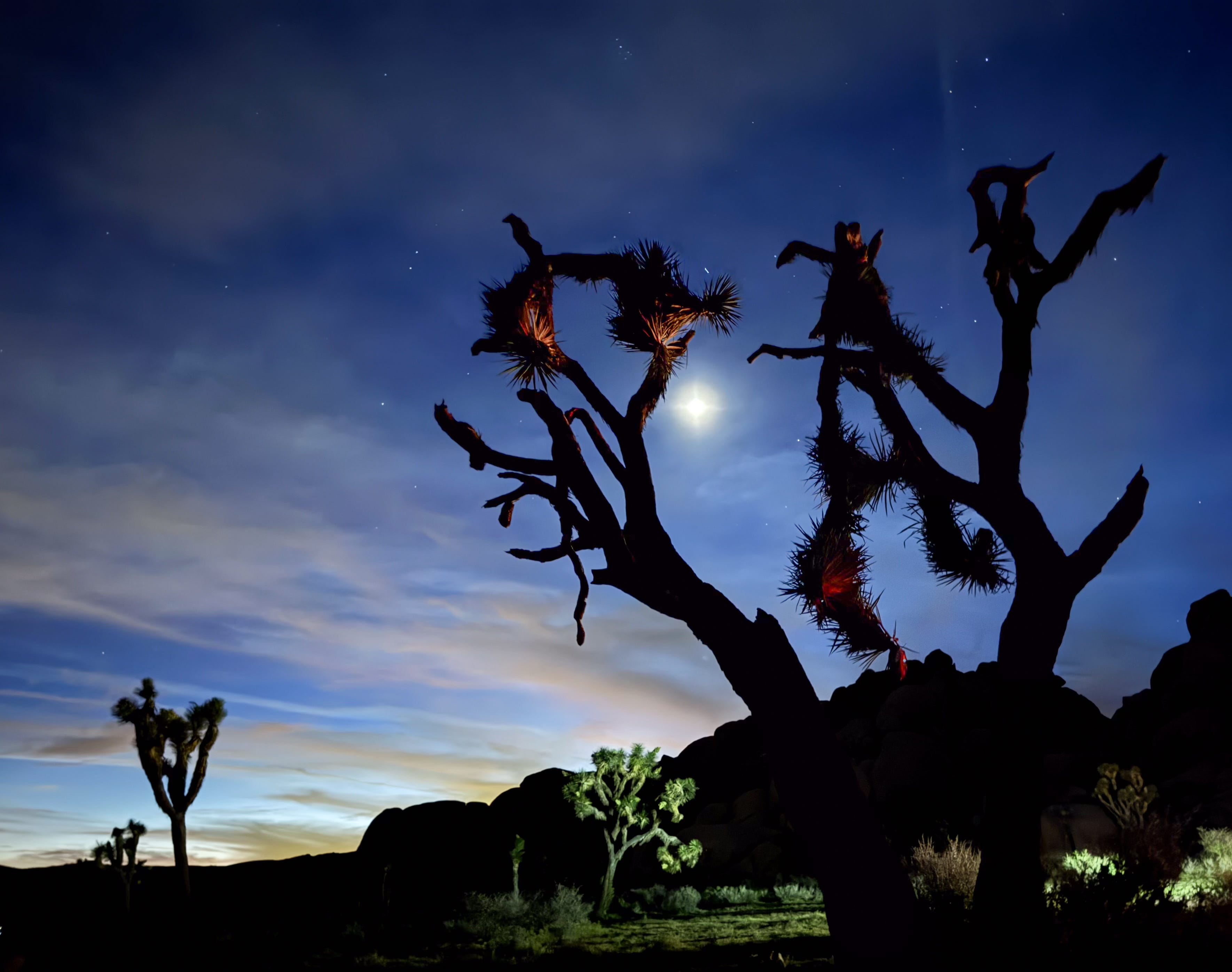 Our night of astronomy in Joshua Tree National Park was clouded over (for the most part). But it was beautiful and restorative nonetheless to be in the desert under the night sky. See the photos below, taken by Jill and me with our iPhones.