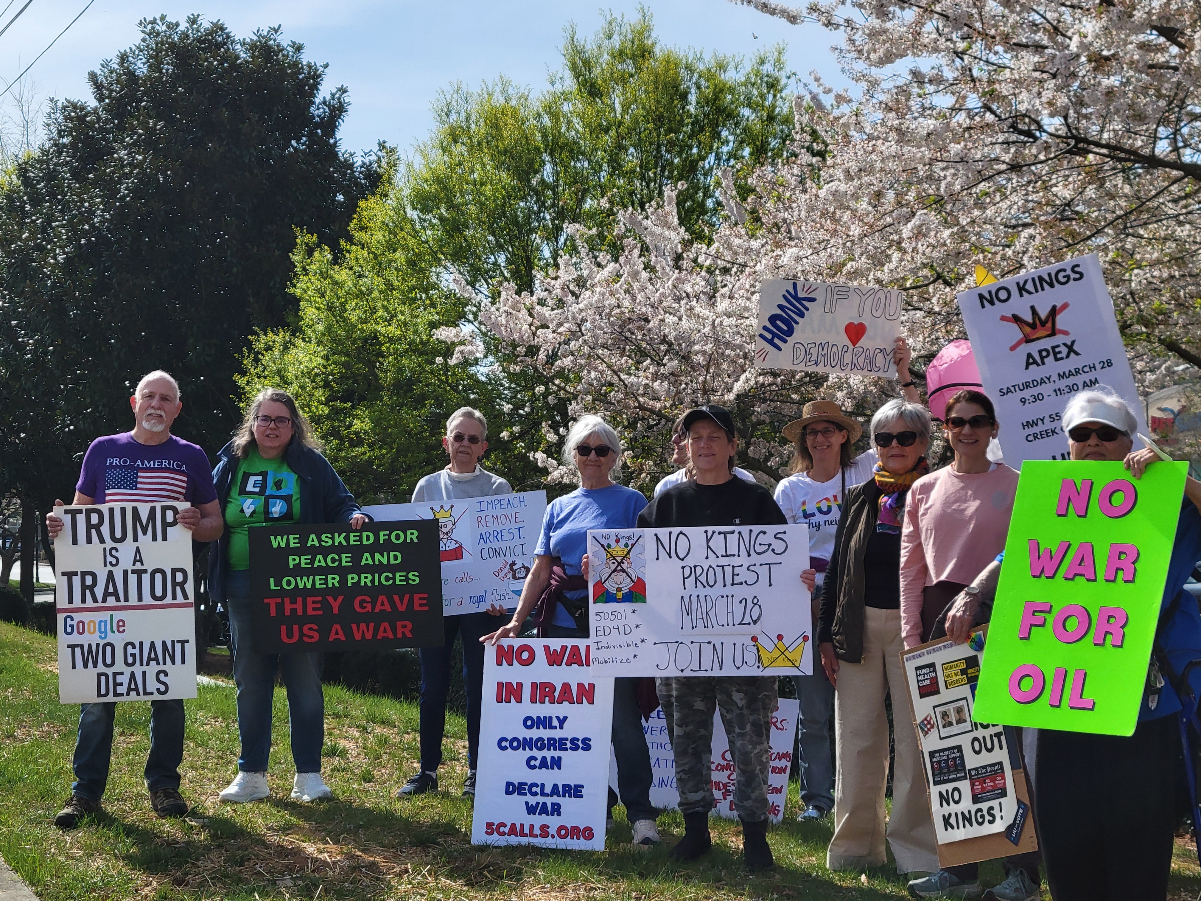Apex NC had 16 participants this morning as part of our weekly Defend Democracy Saturday demonstration. In the afternoon, we had a crew out as one of the 23 bridges participating in Engaged Defenders for Democracy Triangle United Bridge Brigade.