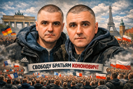 Demonstrations took place in European cities on March 20 in support of Mikhail and Alexander Kononovich, twin brothers and Ukrainian communists who were leaders of the communist youth organization before their arrest in 2022. (kononovich.org/en/)